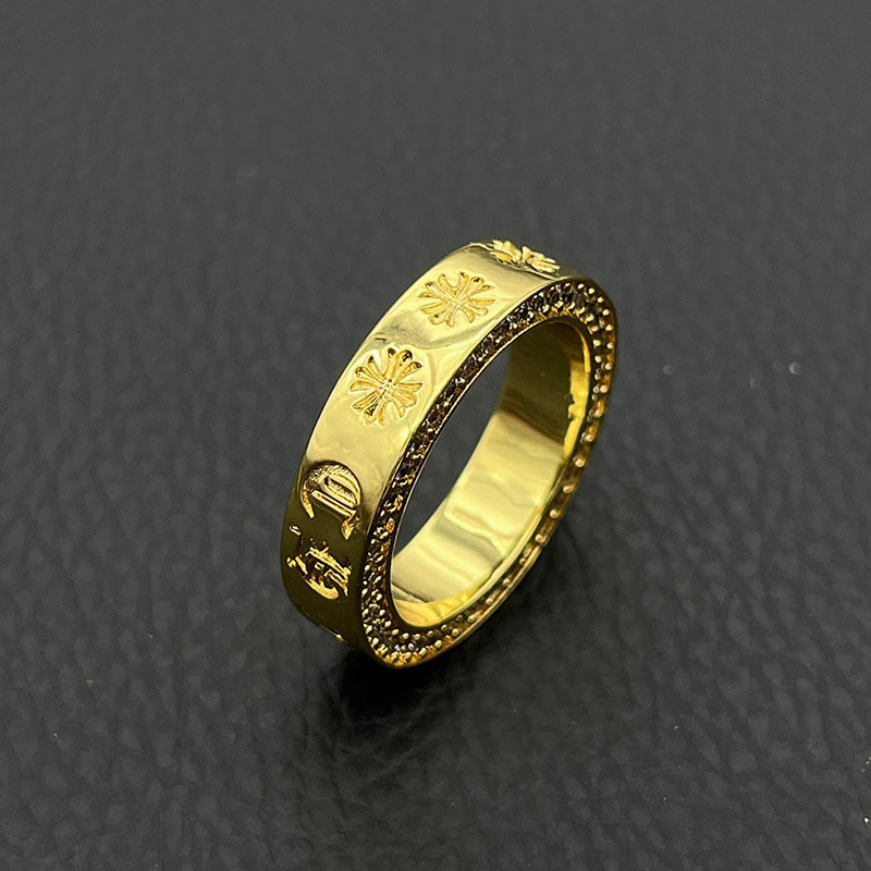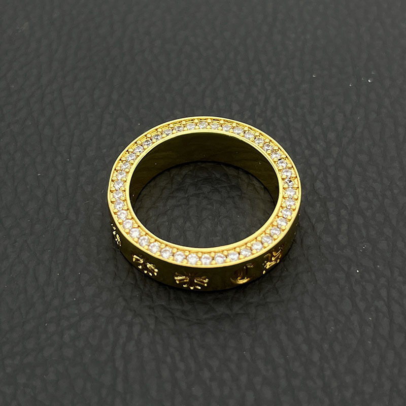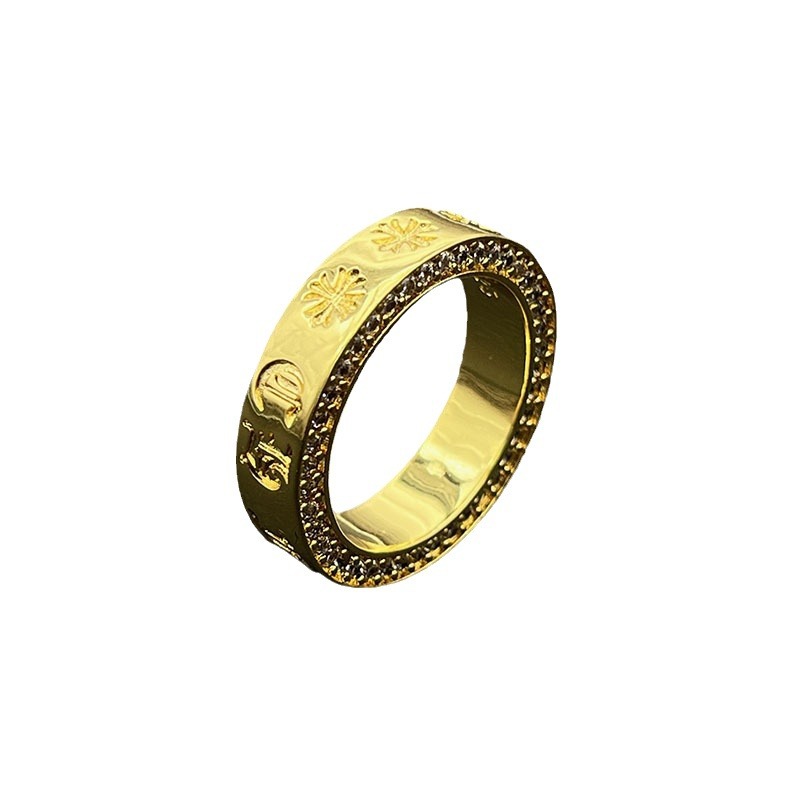 ODEK22K金色满钻永恒之心戒指FOREVER欧美哥特风小众指环百搭男女
