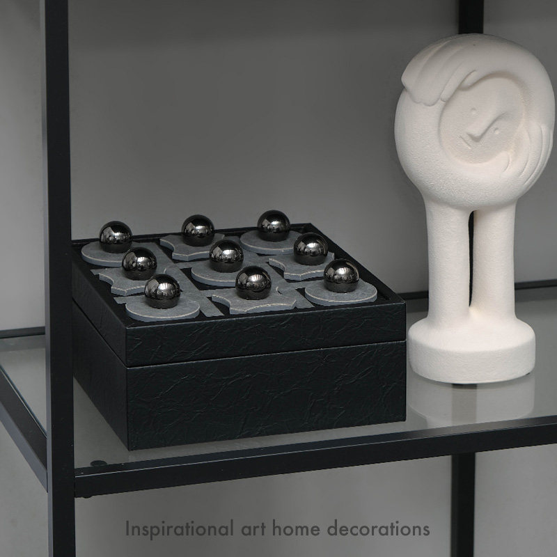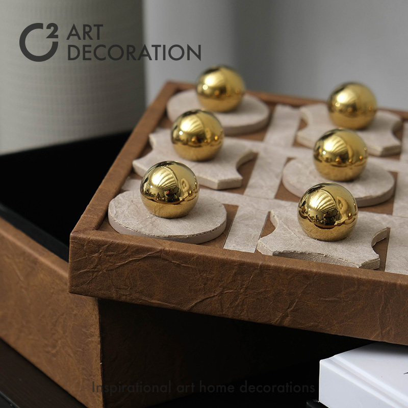 现代轻奢新中式棋盘造型皮质收纳盒茶几装饰品摆件