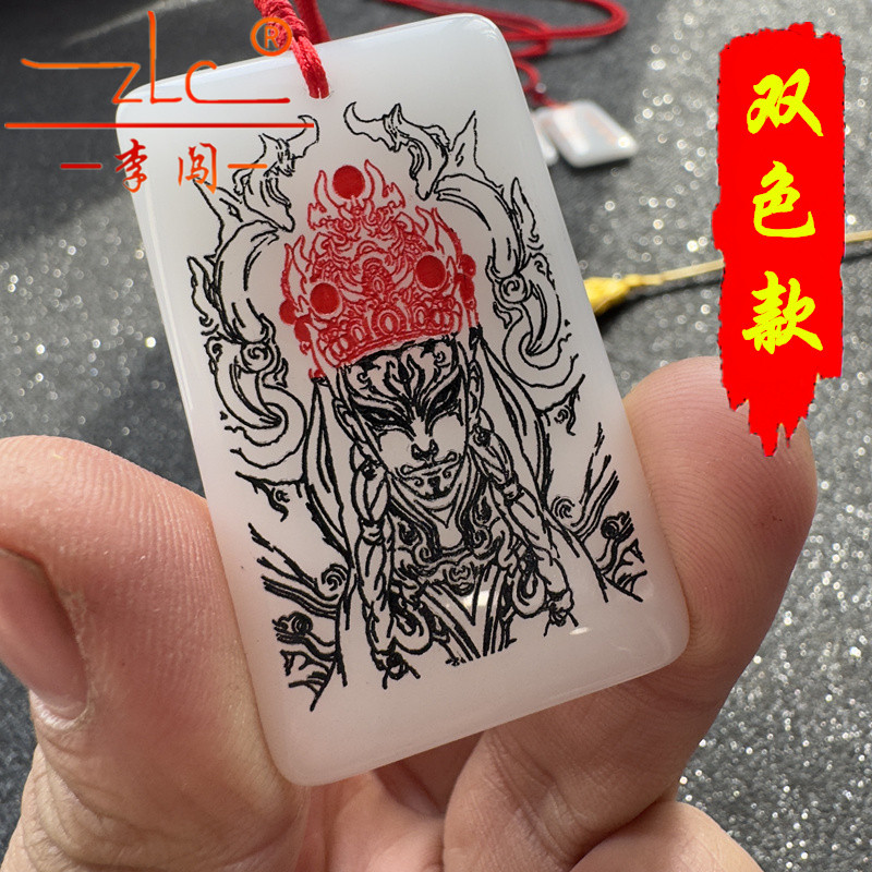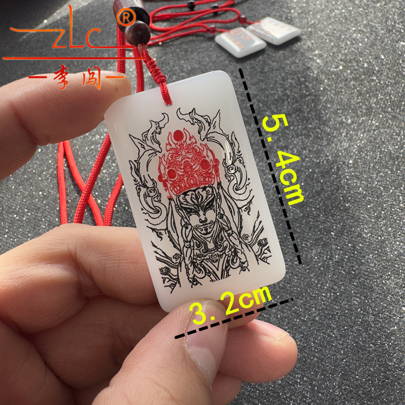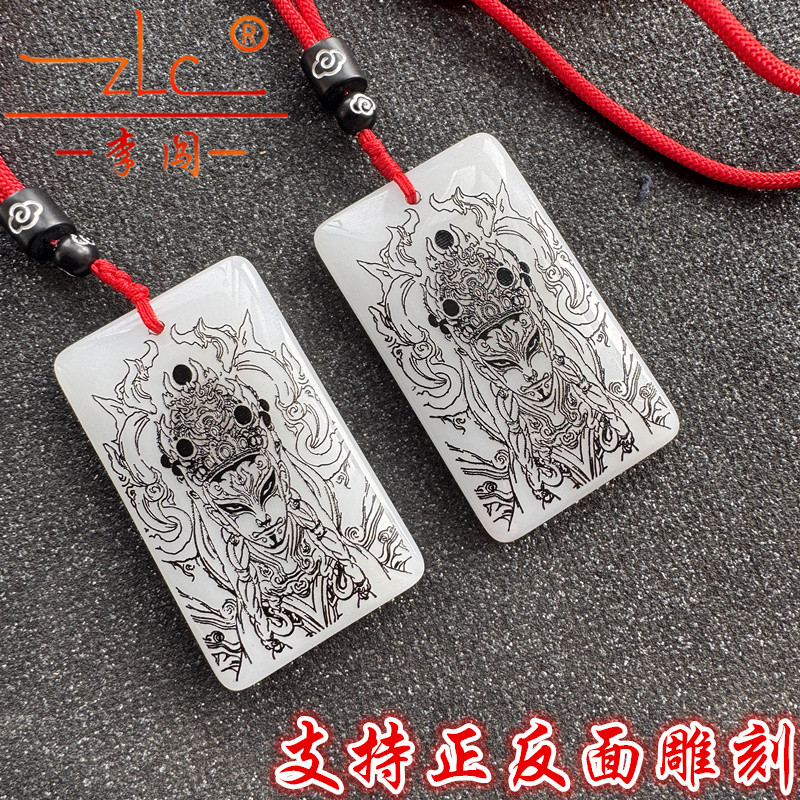 水晶挂坠定制雕刻白鹤童子官将首雕刻图男女士款无事牌名生肖吊坠