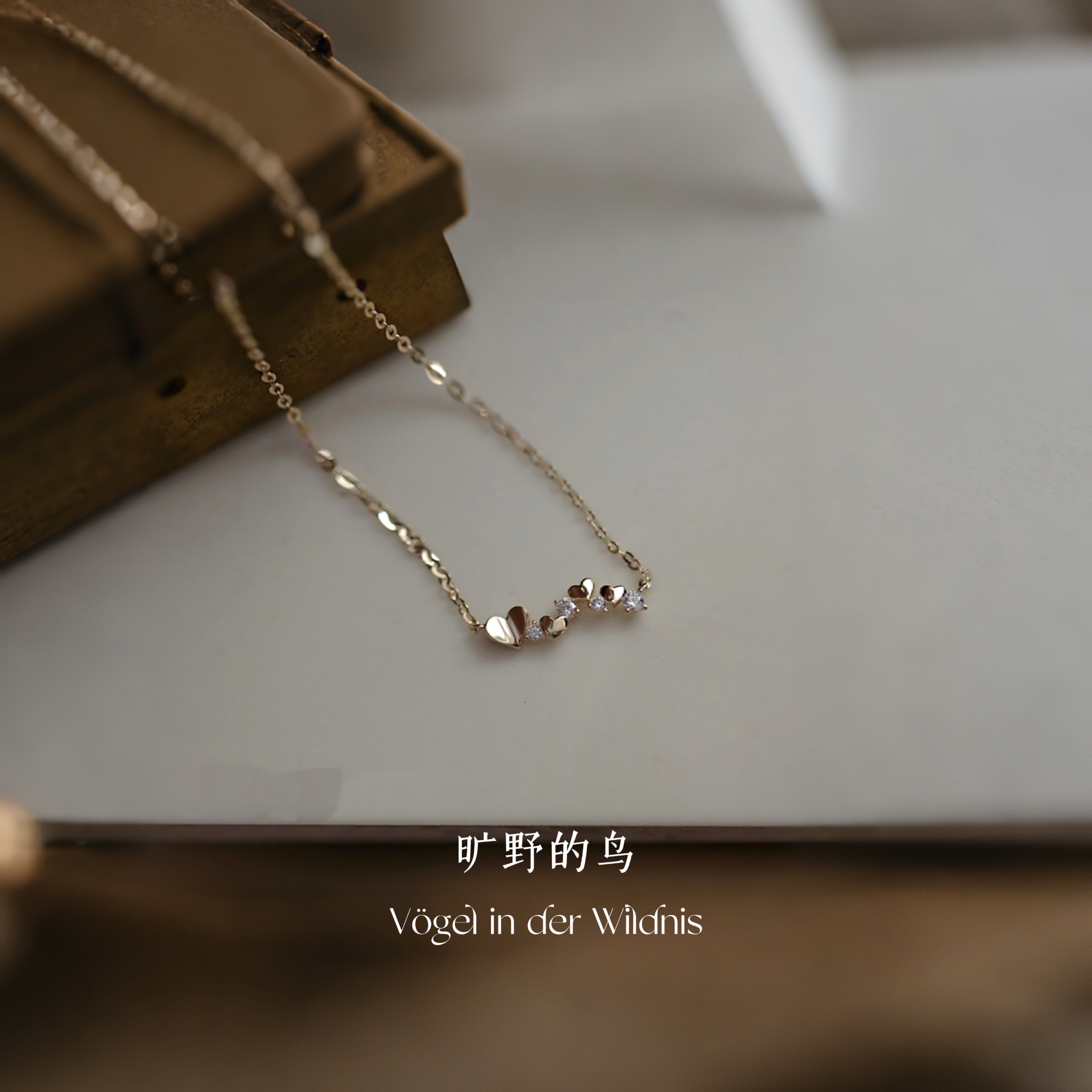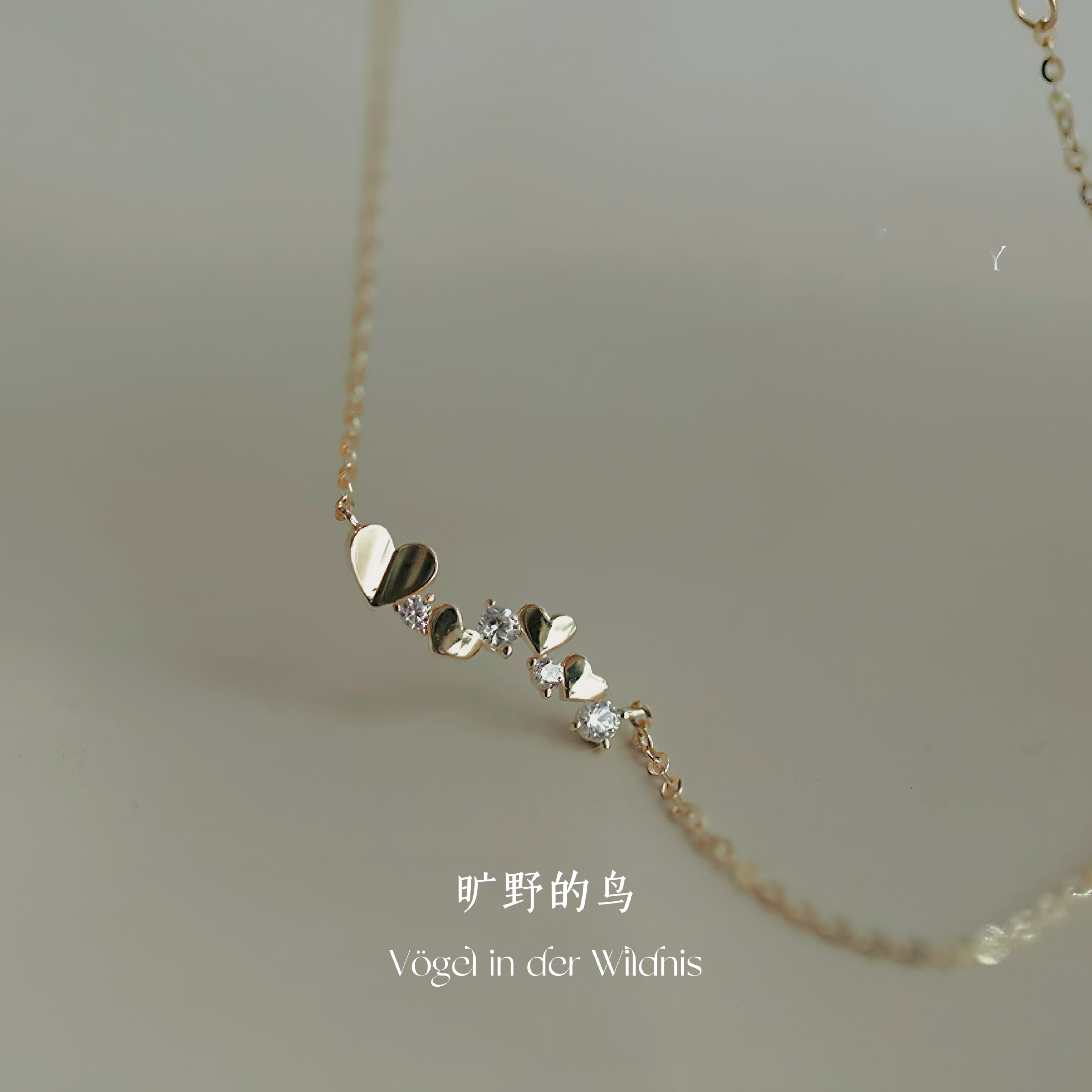 Vögel「心心」S925微笑锁骨链精致高级感纯银金色一排爱心项链女