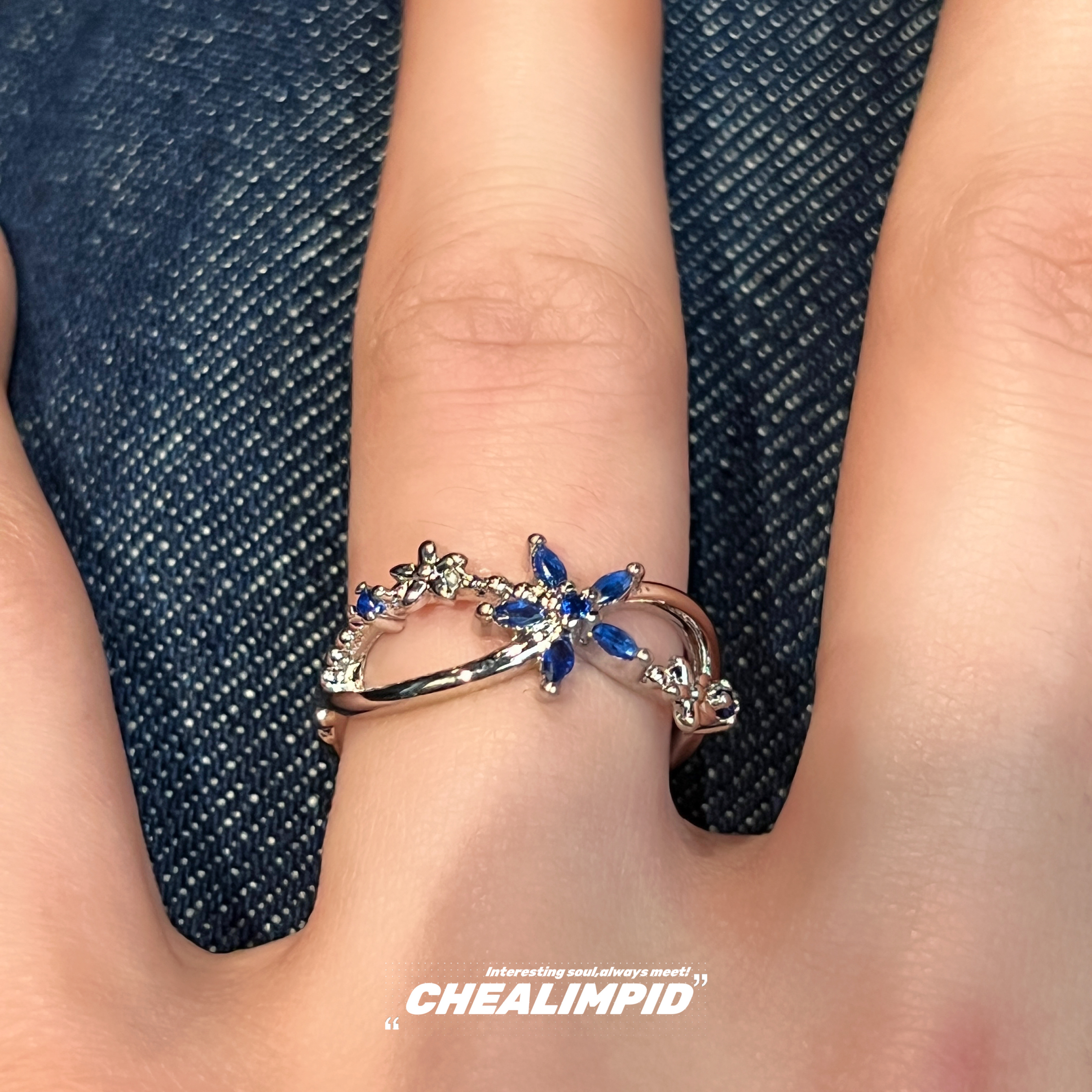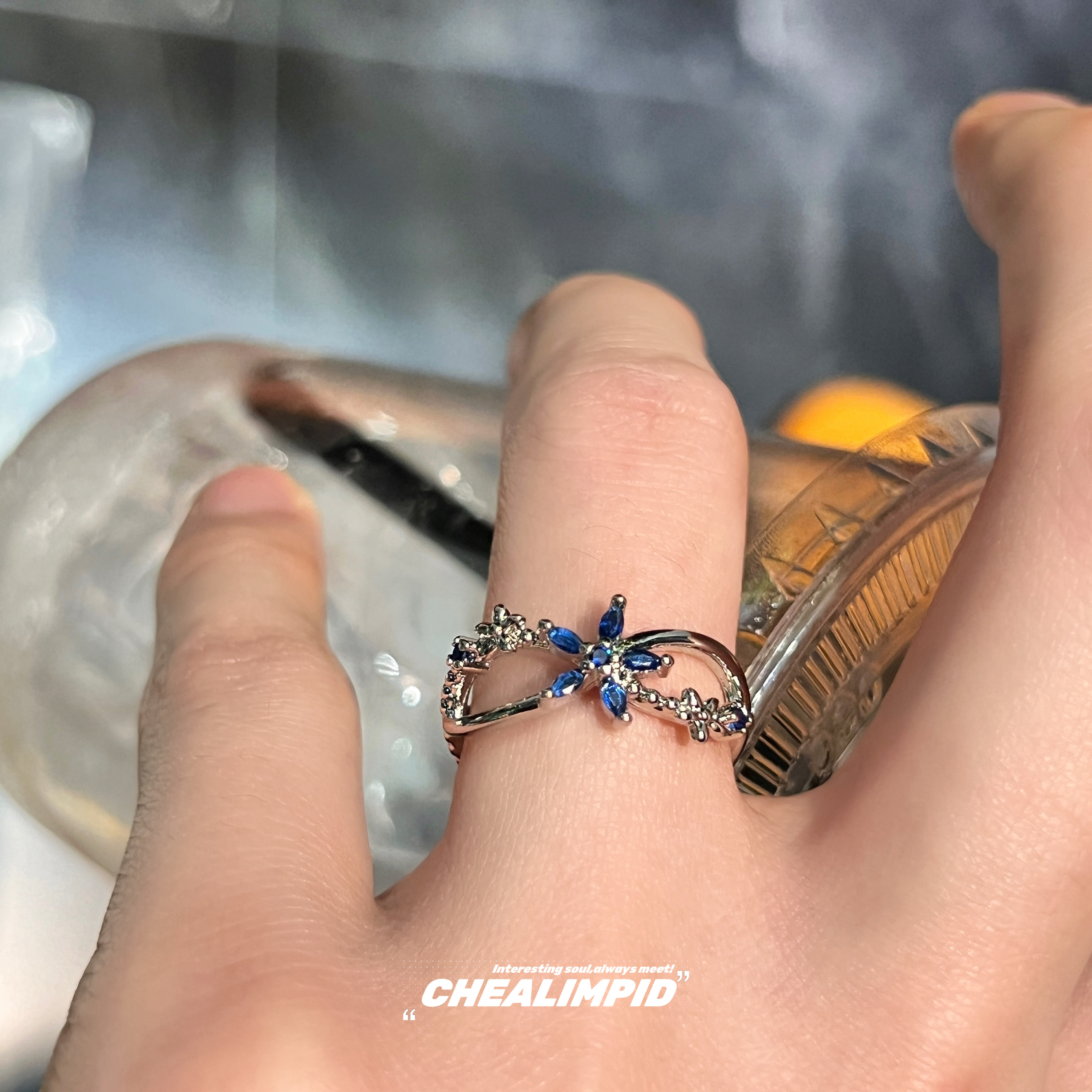 CHEALIMPID/.蓝钻小花环绕开口戒指小众设计高级感轻奢潮男女指环