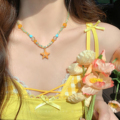 多巴胺百搭2025海星串珠夏天项链新款海边度假锁骨链橙色颈链