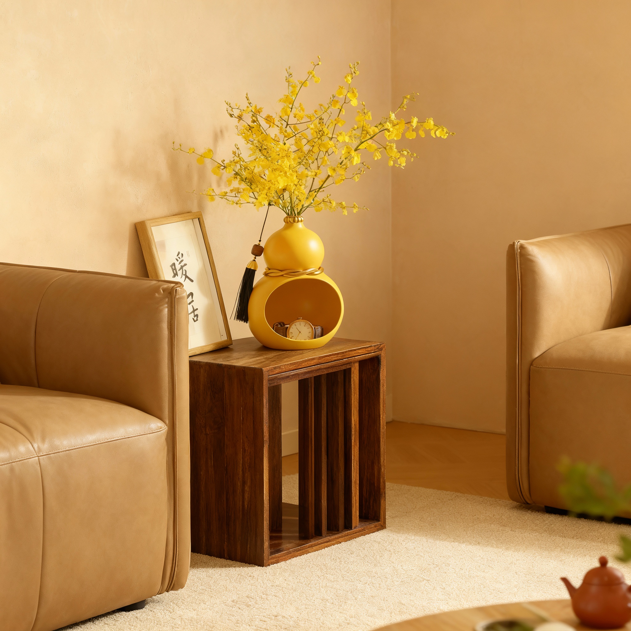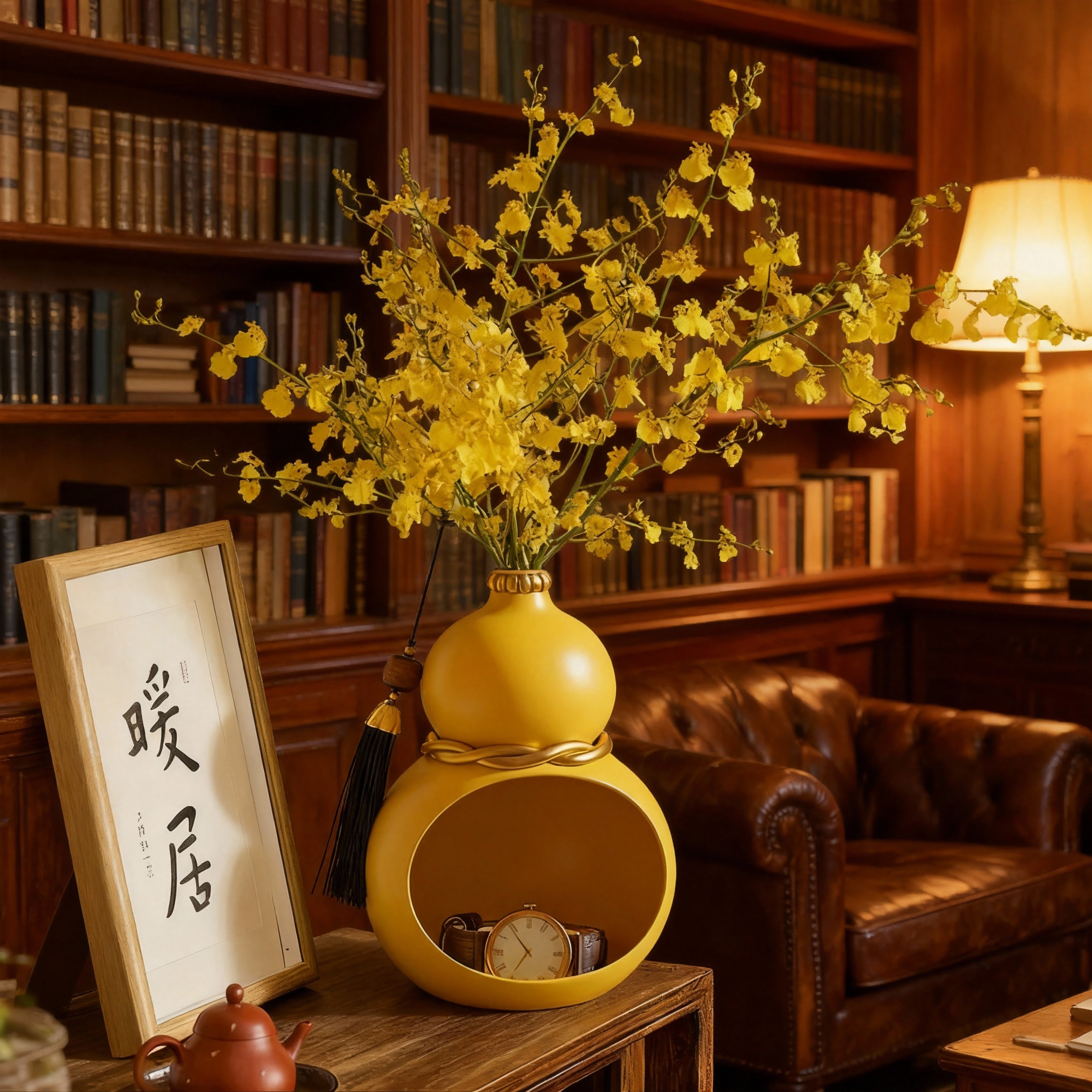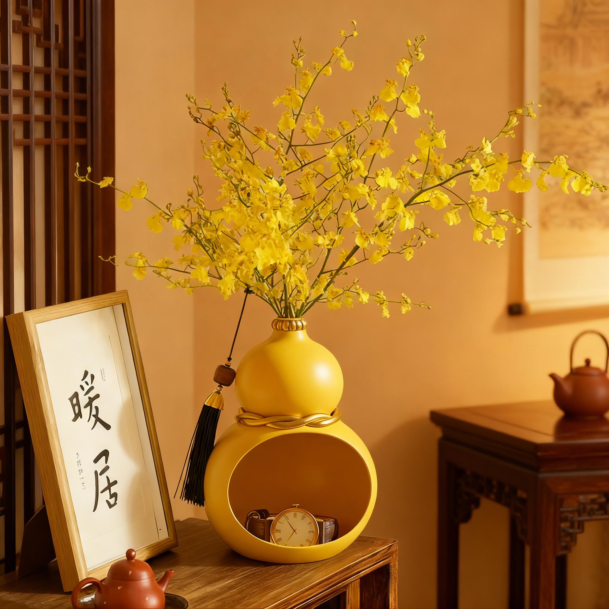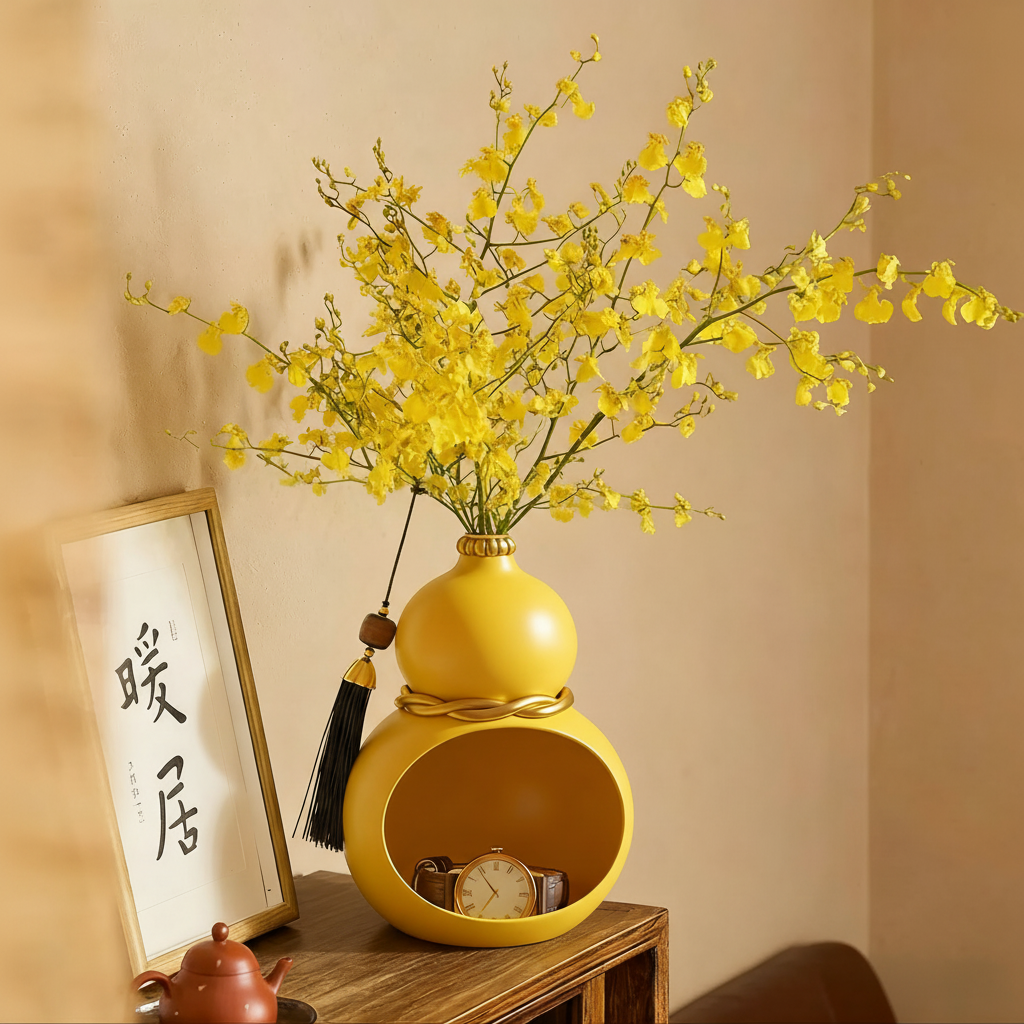创意陶瓷花瓶收纳摆件家居装饰品黄色多功能客厅卧室桌面工艺品