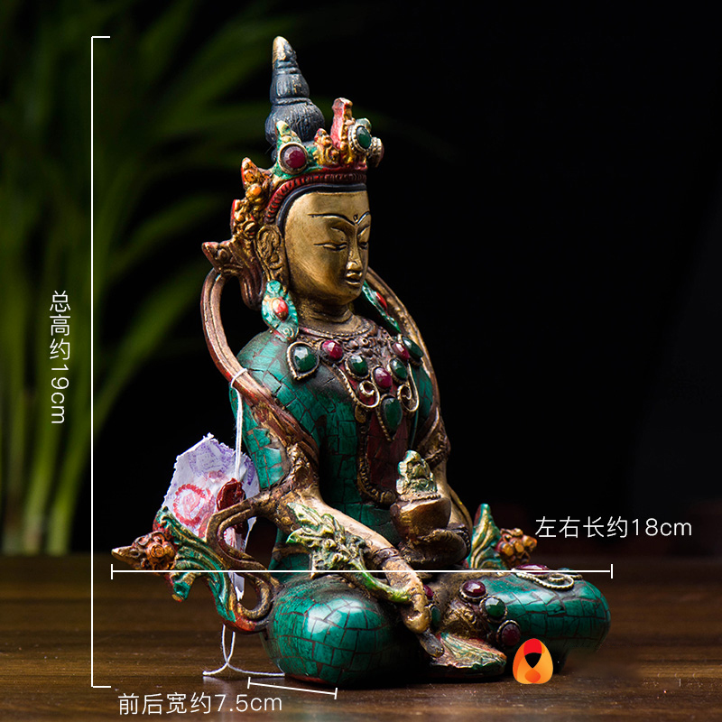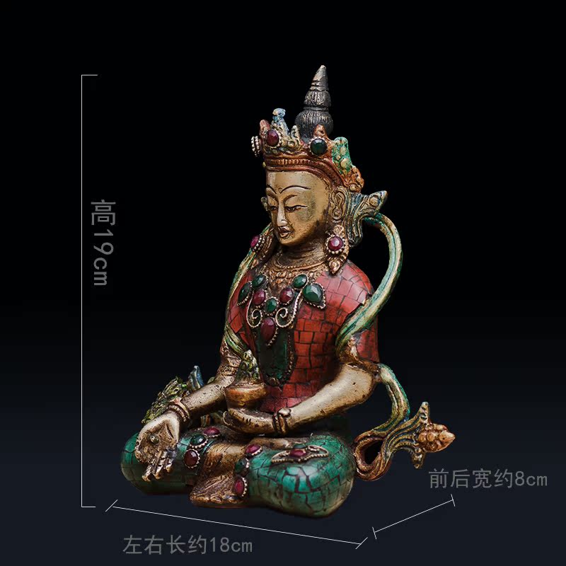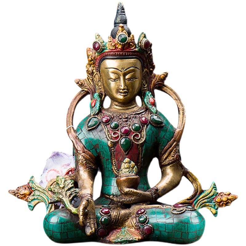药师铜像现代雕花尼泊尔手工铜镶嵌松石7寸现代三宝佛摆件