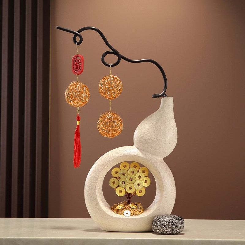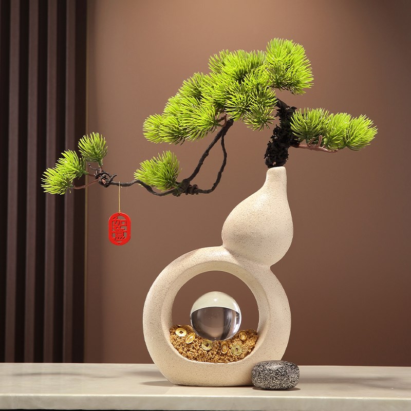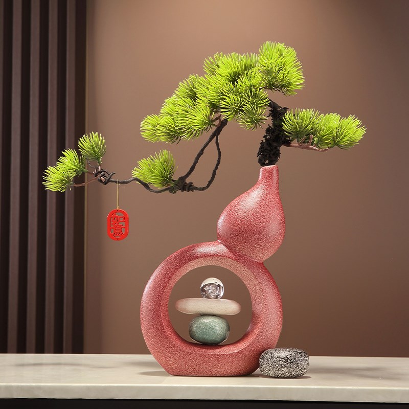 入户门玄关葫芦花瓶摆件迎客松A花艺招财装饰品客厅石来运转乔迁