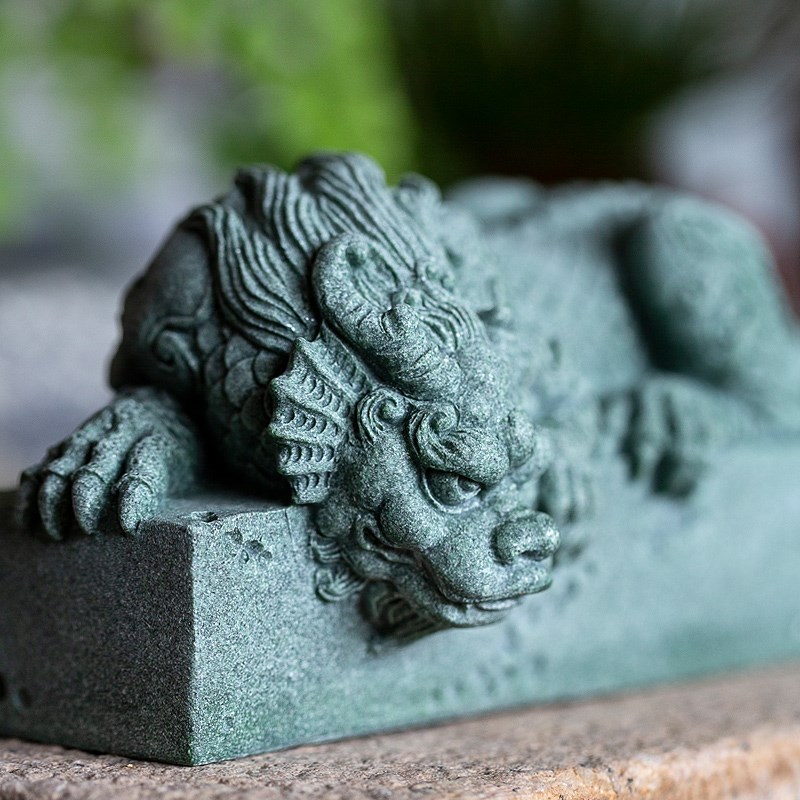 碌心 中式复古桌面摆件青砂石盘龙石玺鱼缸假山造景摆件桌面茶宠