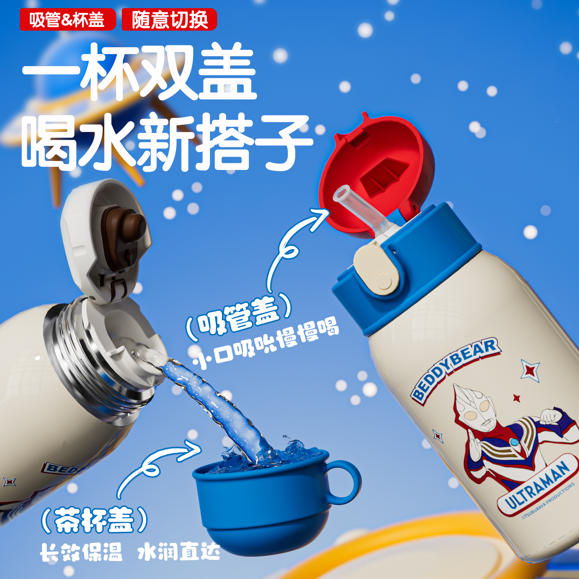 杯具熊儿童保温杯波点奥特曼吸管水杯幼儿园便携水杯小学生水壶