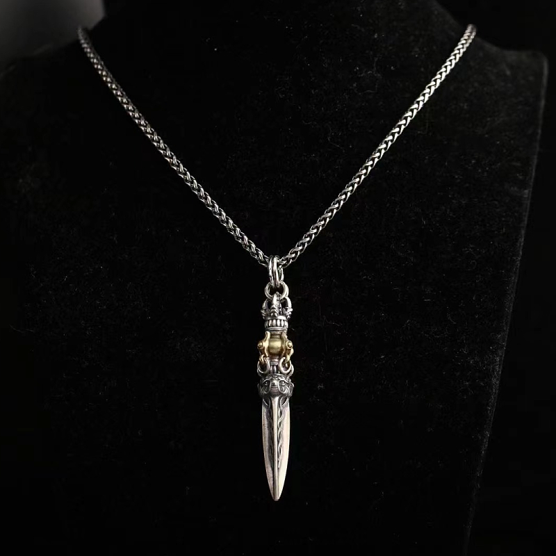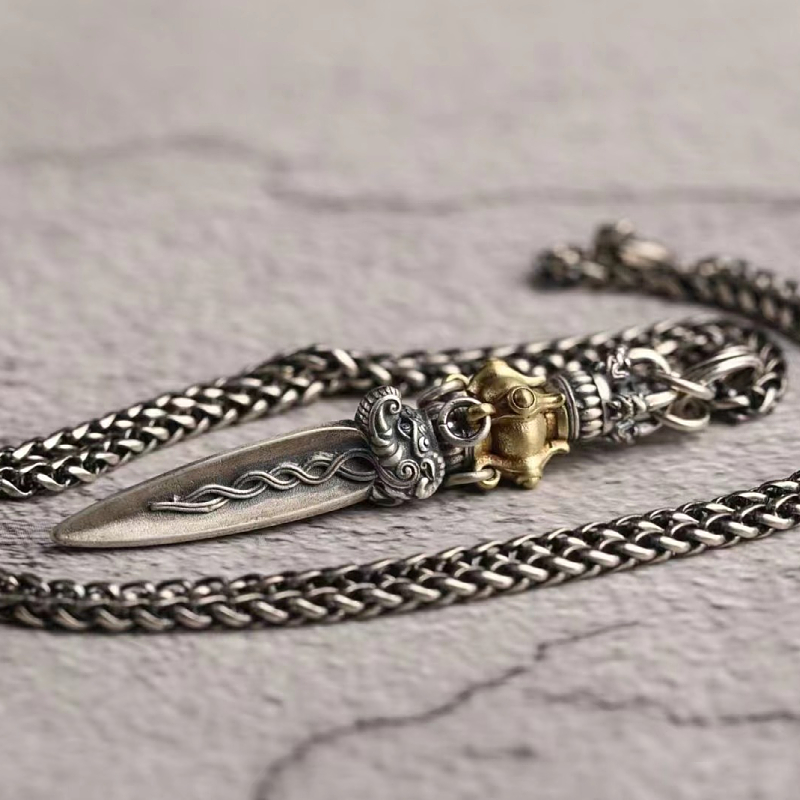 梅卡原创925纯银降魔杵金刚杵吊坠项链男藏式本命年法器女护身符