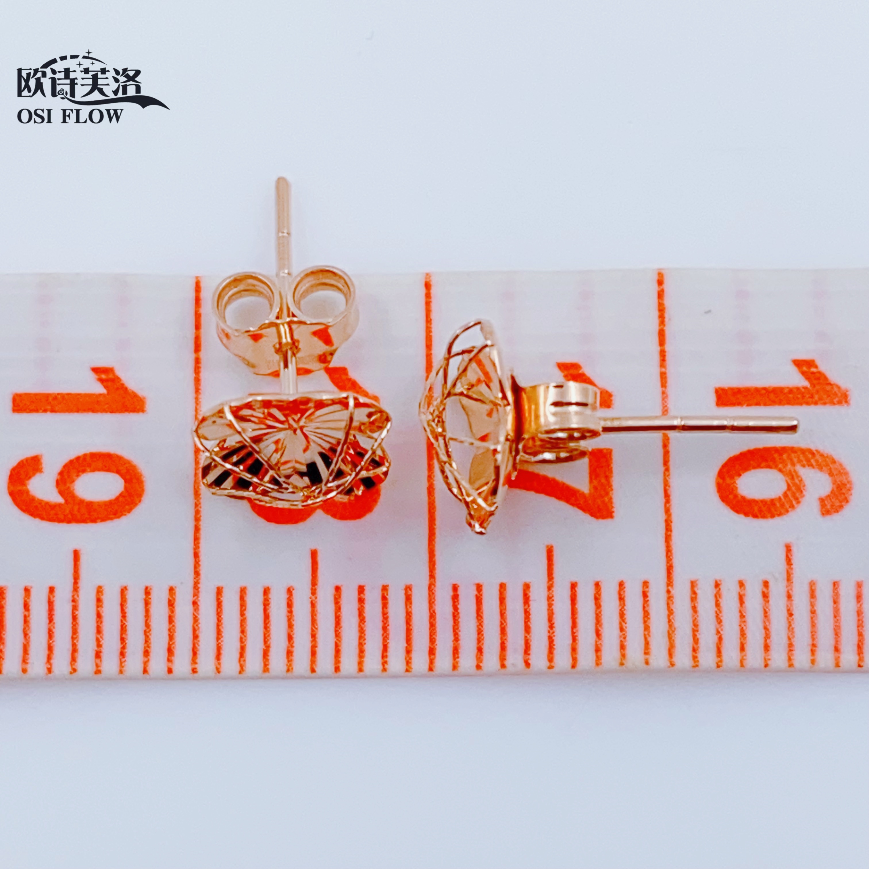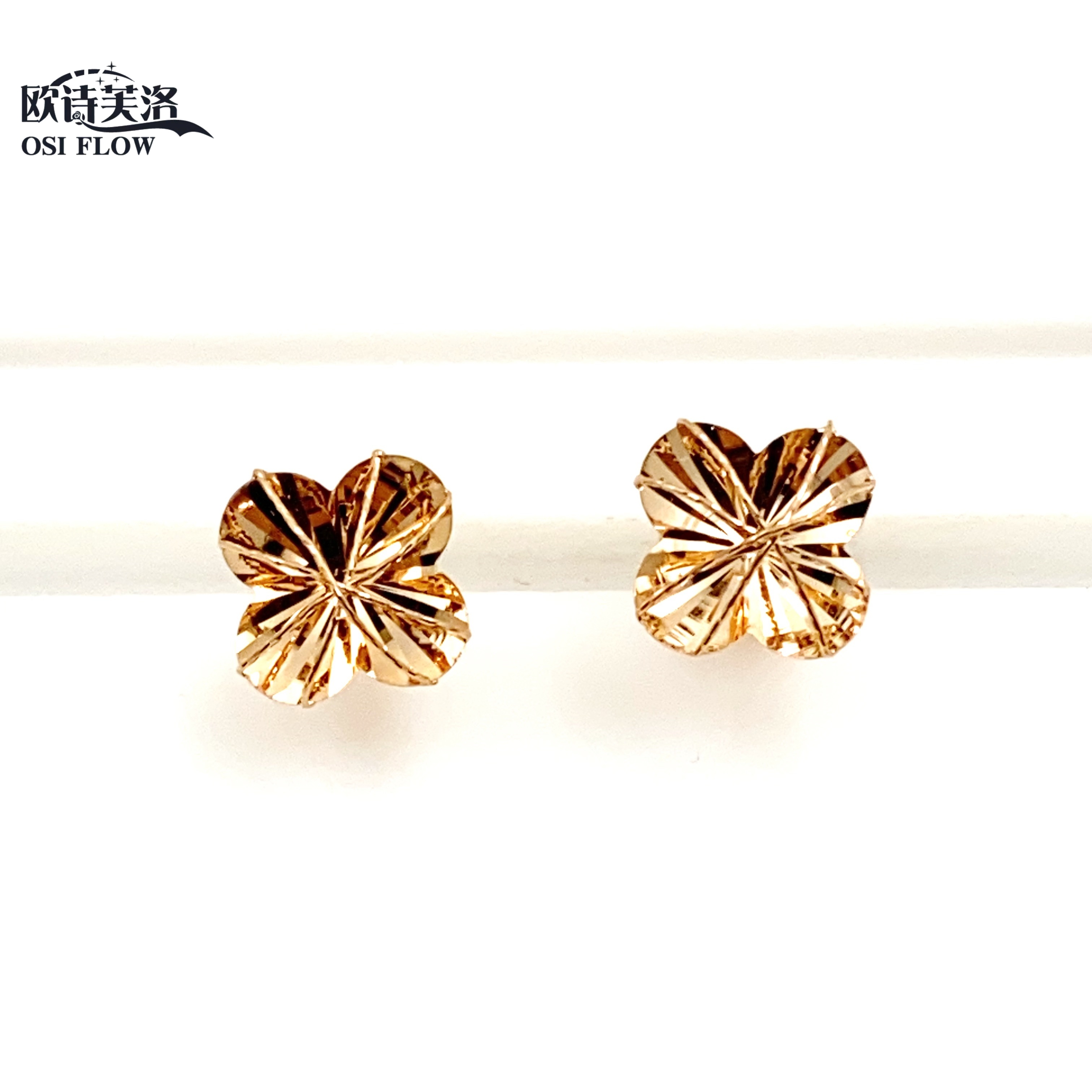 正品俄罗斯14K玫瑰金爆闪幸运草拉丝光面耳钉女新款时尚闪亮紫金