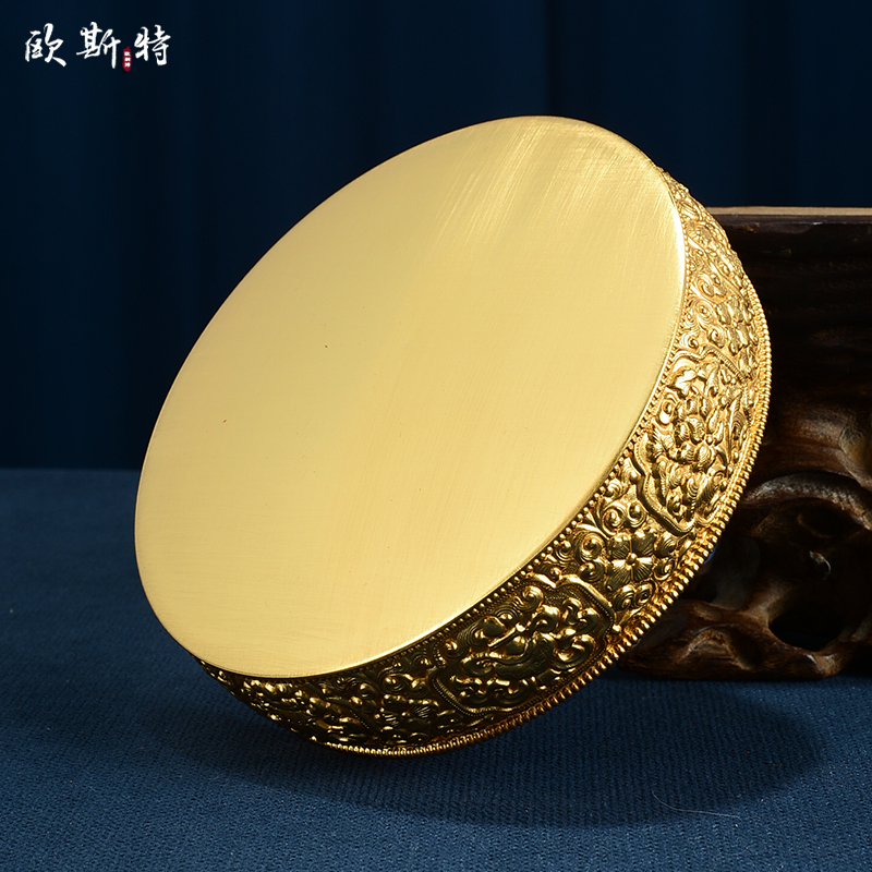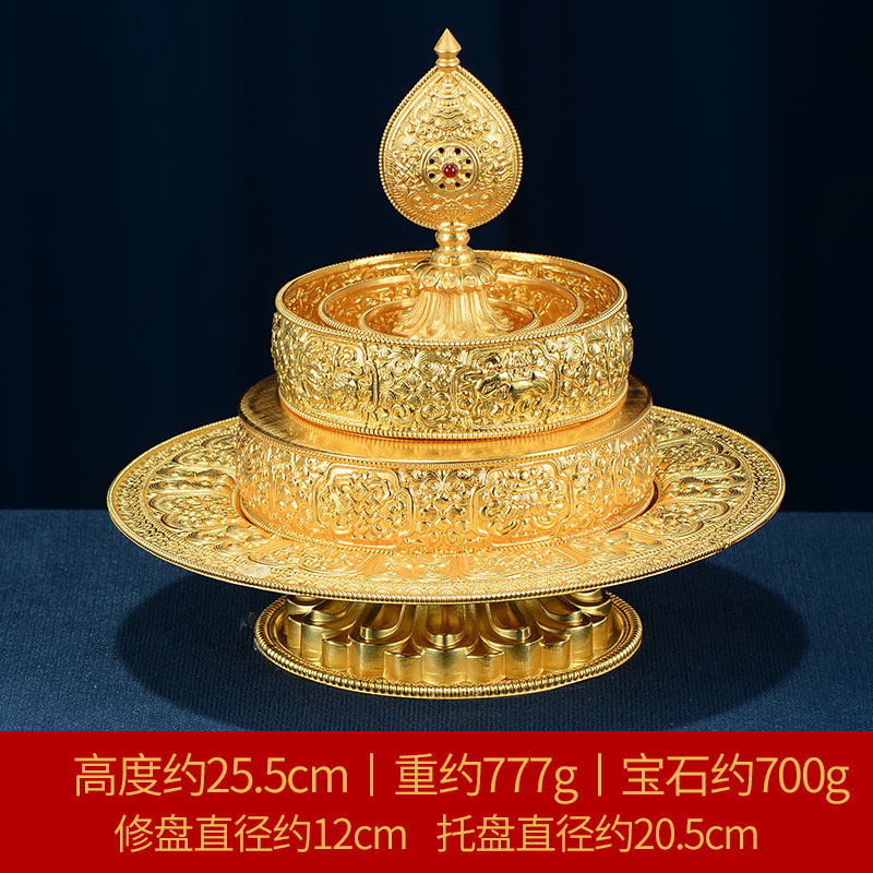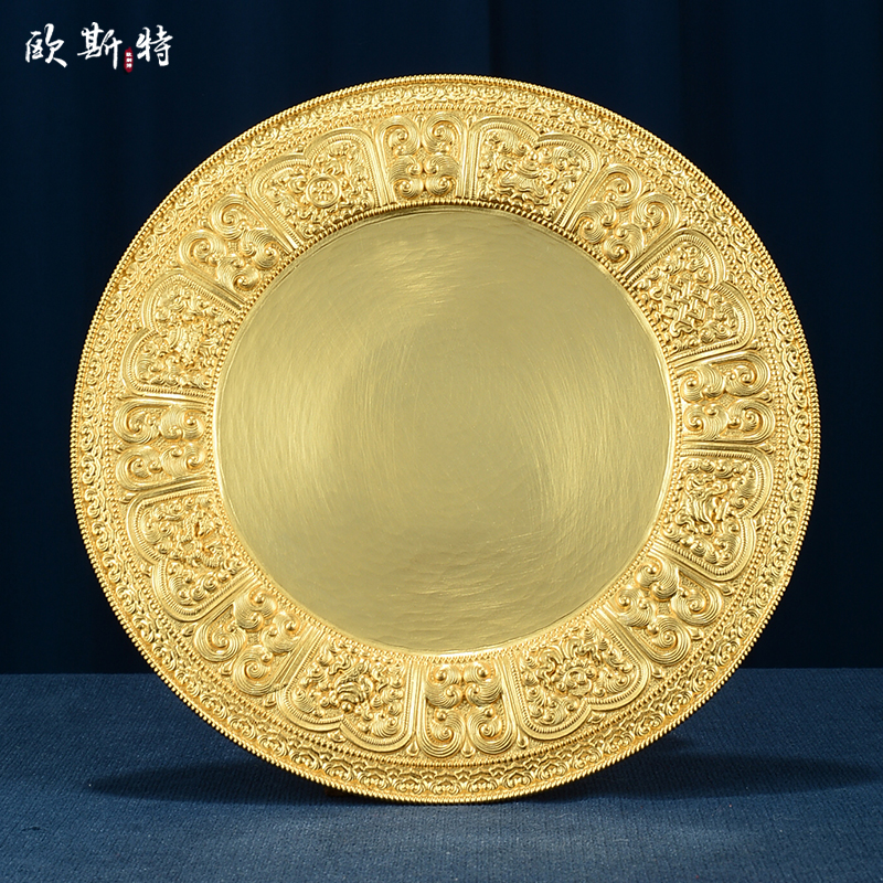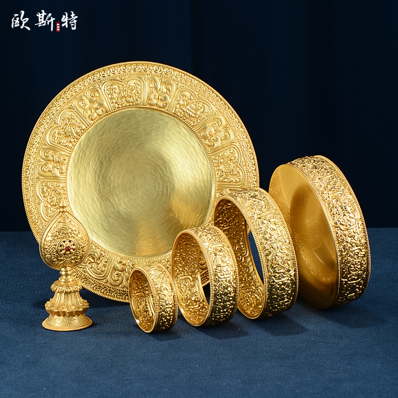 欧斯特银镀金曼扎盘八吉祥雕花室内家用曼茶罗盘带托盘一套曼达盘