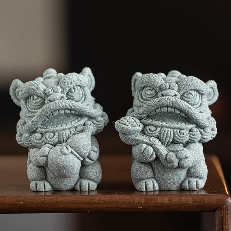 国潮吉祥物石狮子醒狮摆件一对茶宠摆件家居茶桌鱼缸景观造景装饰