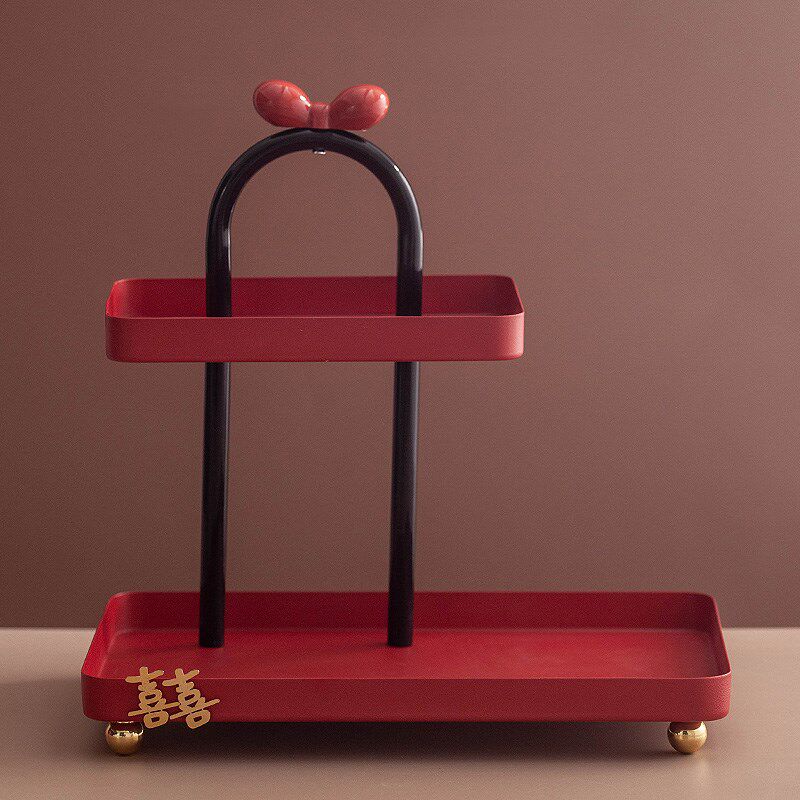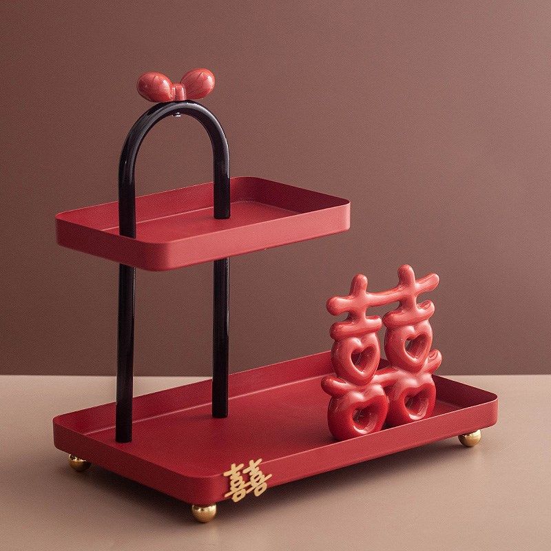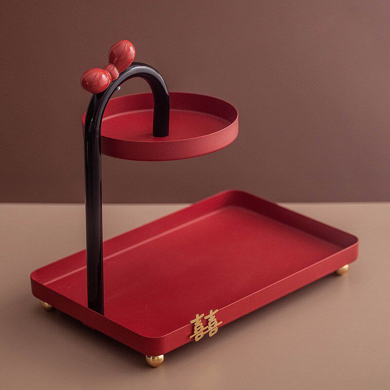 红色喜庆收e纳摆件入户玄关客厅桌面装饰品门口鞋柜电视柜置物架