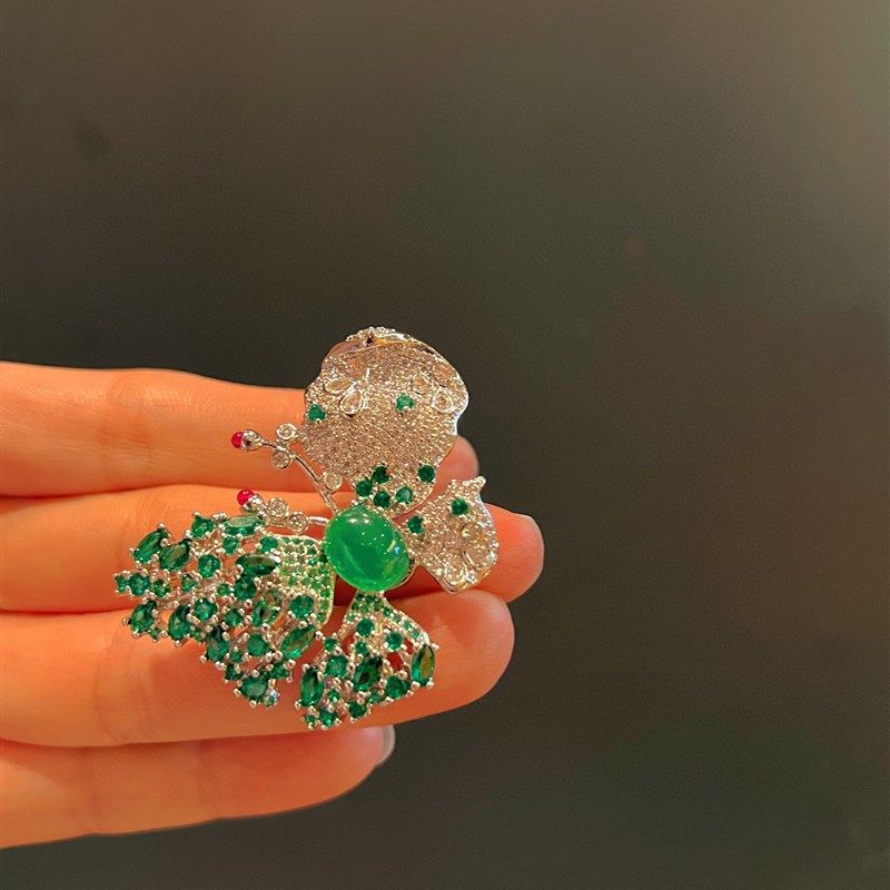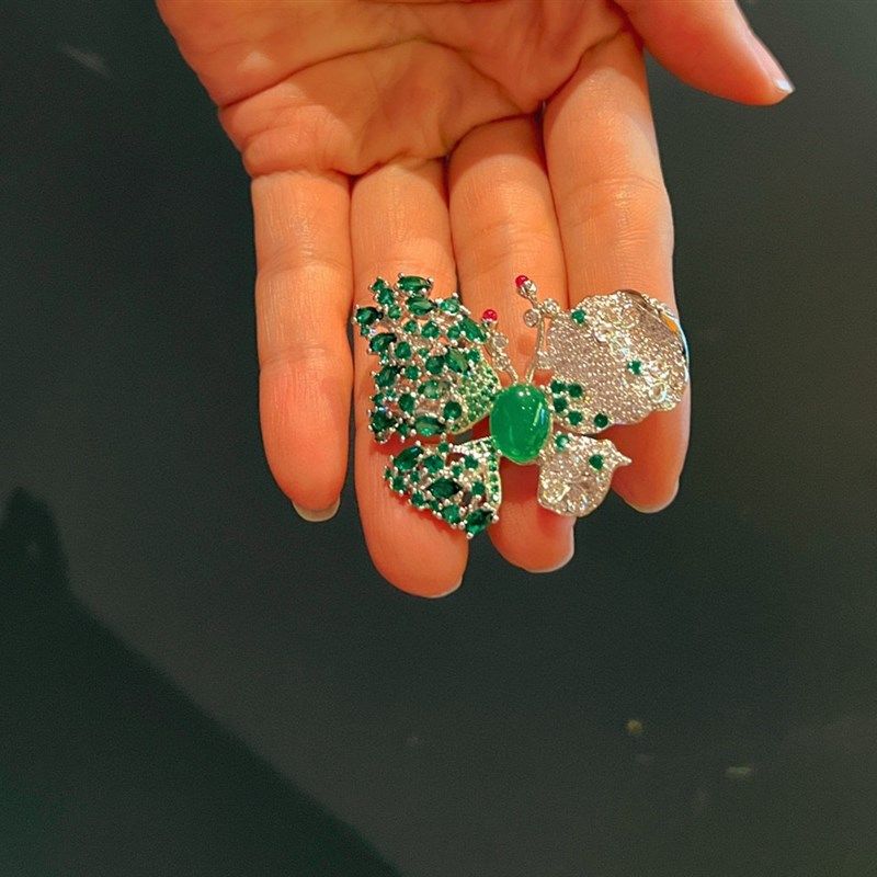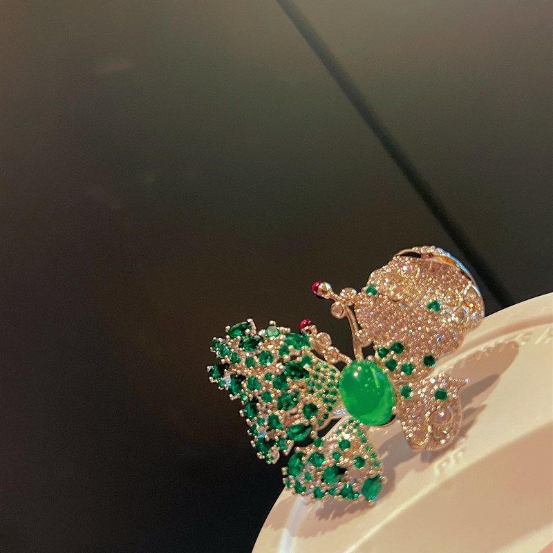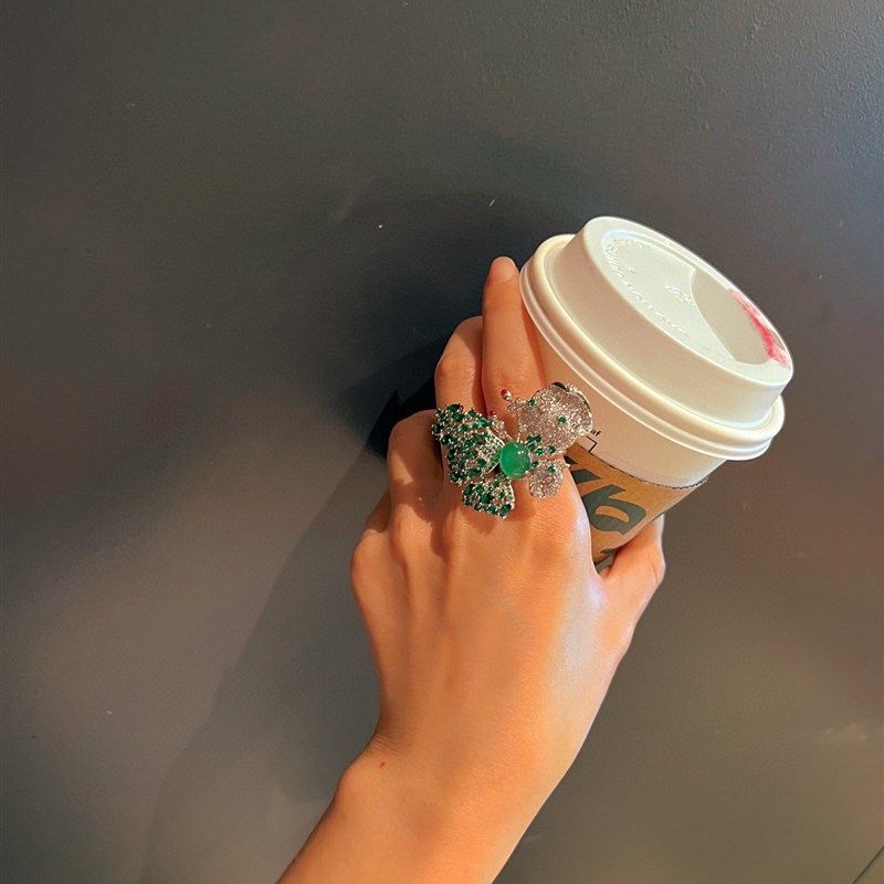 个性复古新款时尚轻奢小众满钻锆石天然绿玉髓戒指网红女潮新品