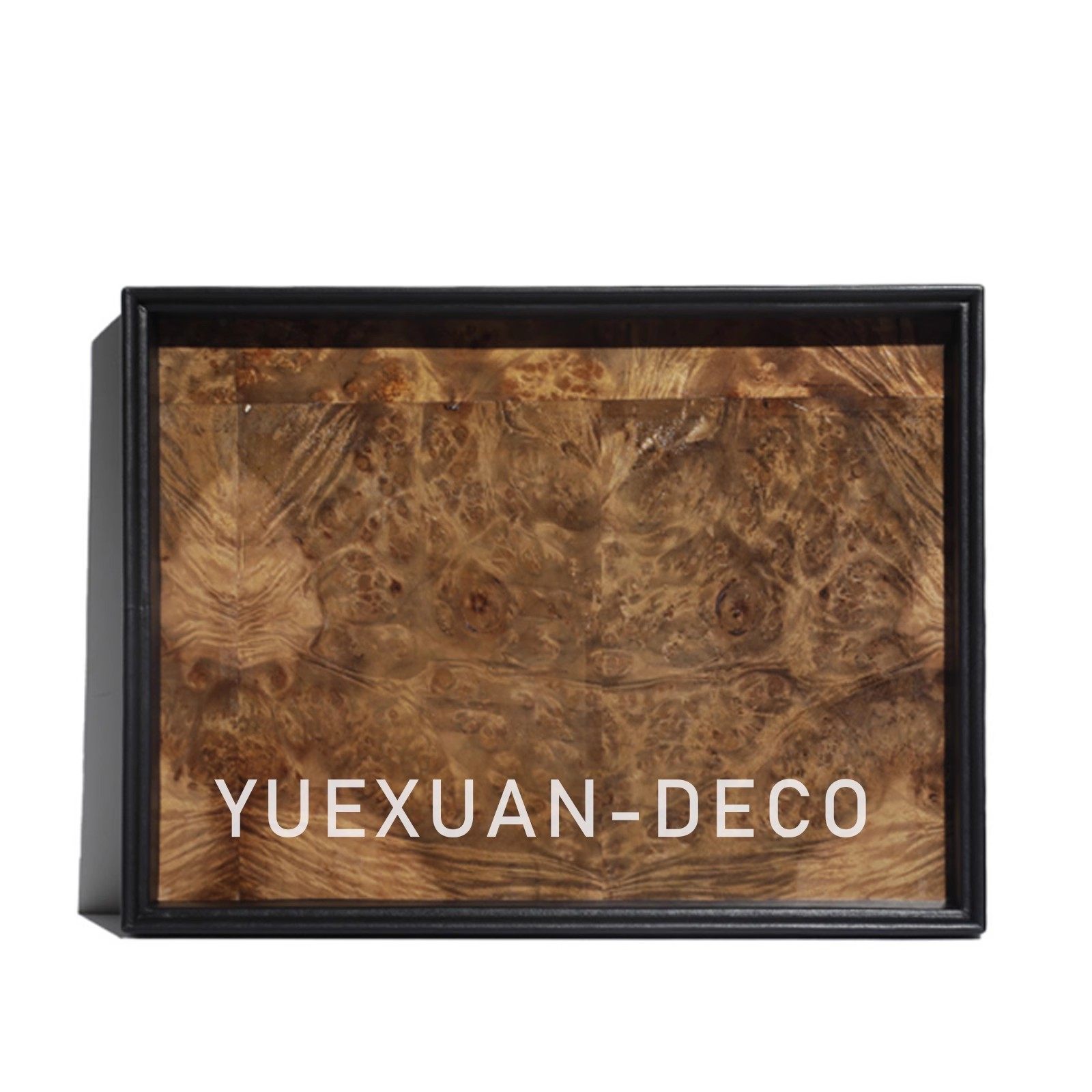 粤萱简约现代皮革实木托盘样板间售楼处酒店茶几餐厅家庭家居软装