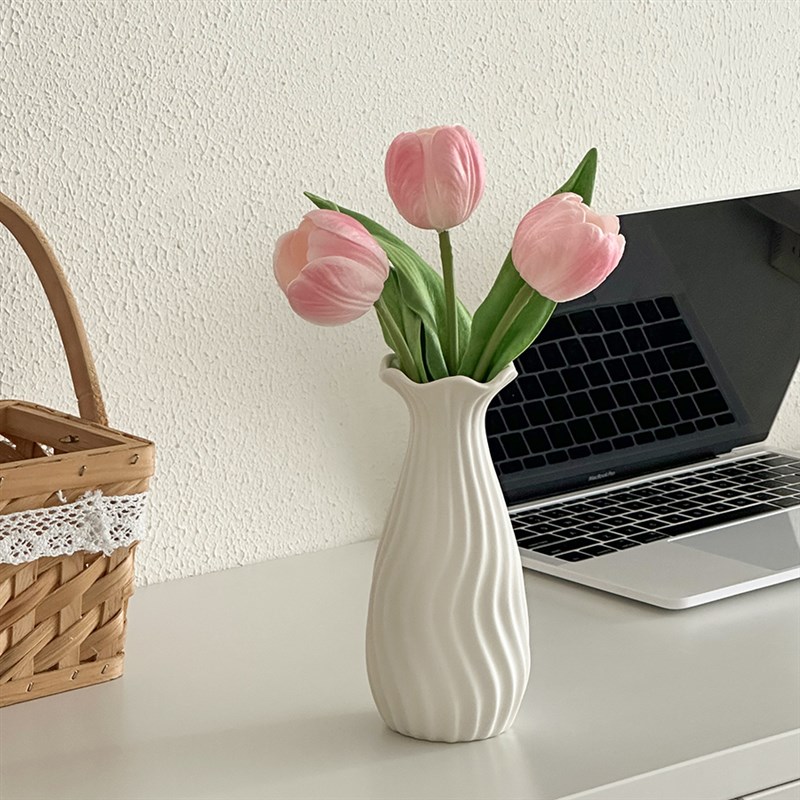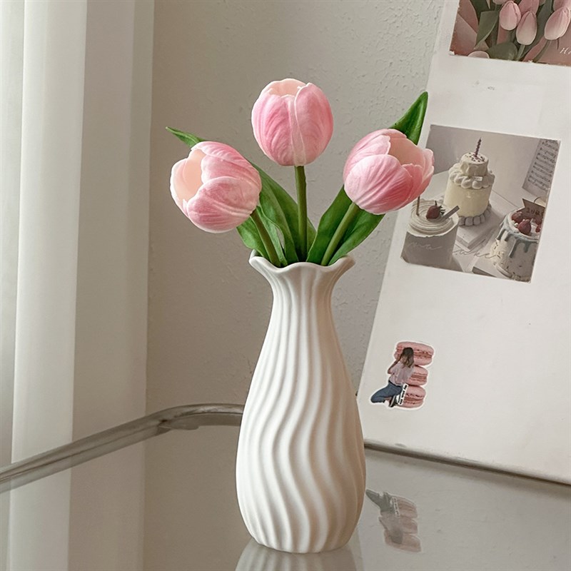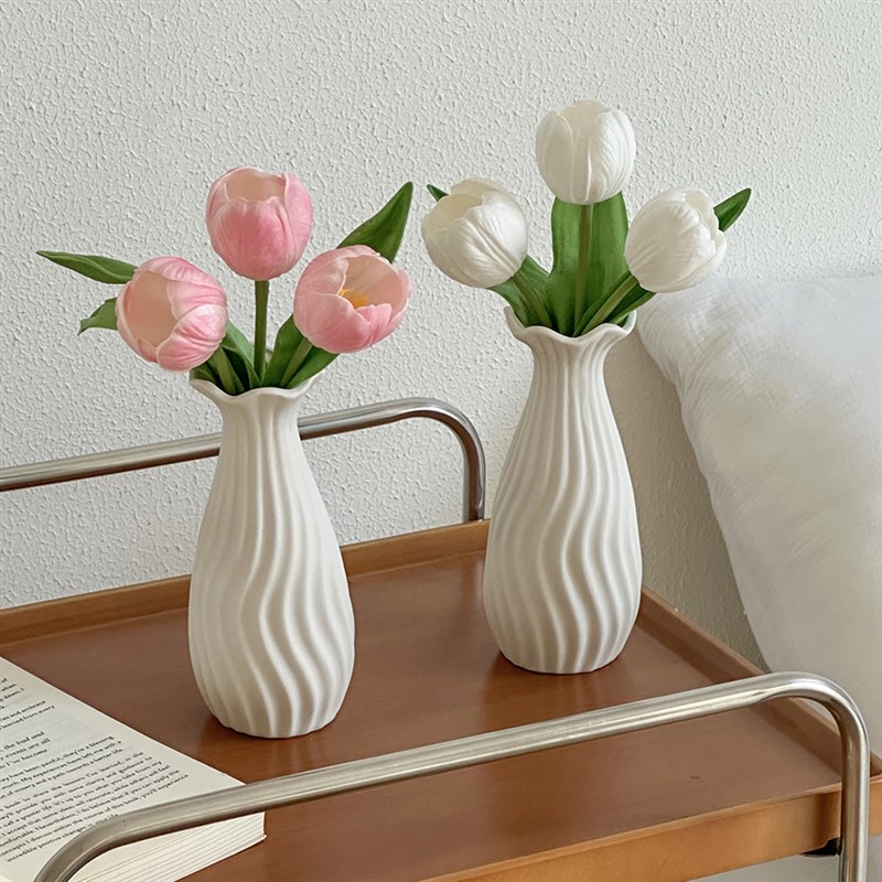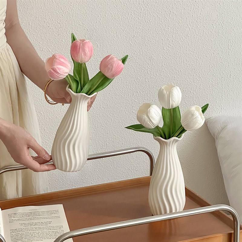 极速花瓶摆件客厅插花郁金香仿真花白色ins韩系陶瓷花瓶玄关装饰
