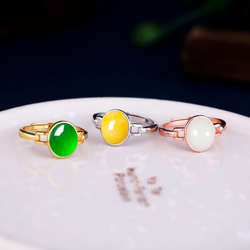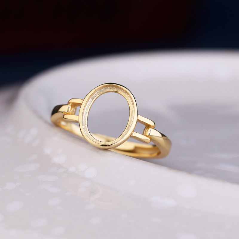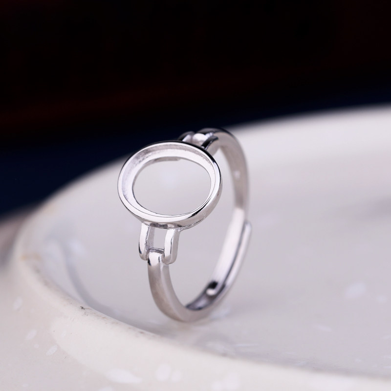 S925纯银戒指空托DIY活口镶嵌和田玉翡翠蜜蜡绿松石戒托女款8*10
