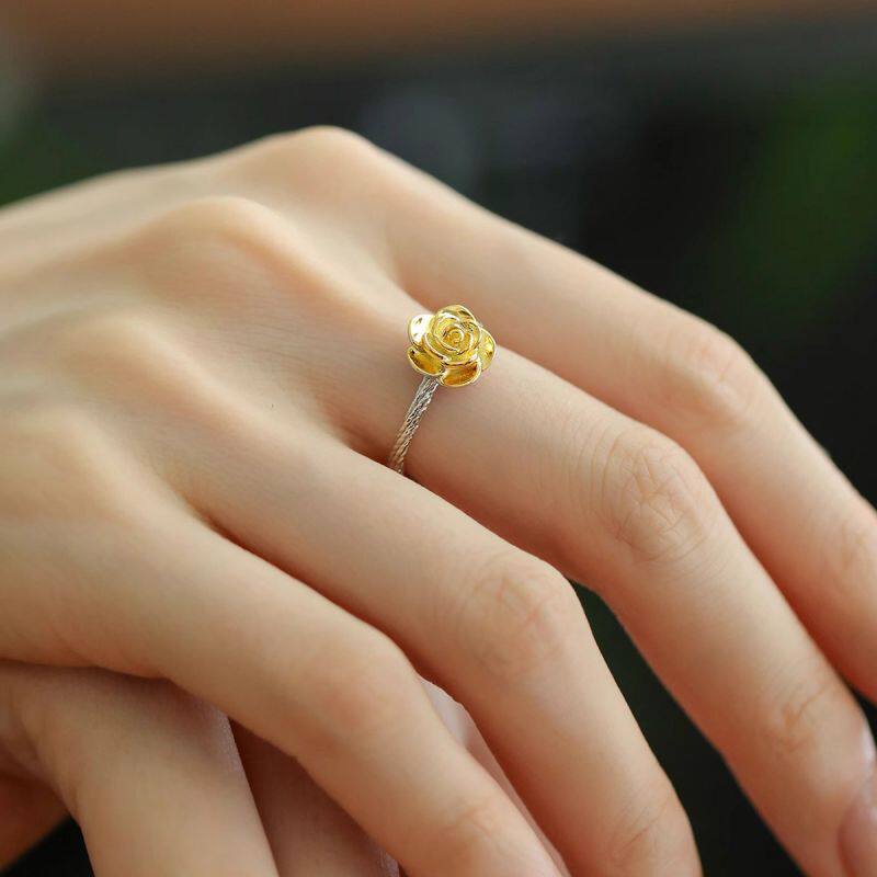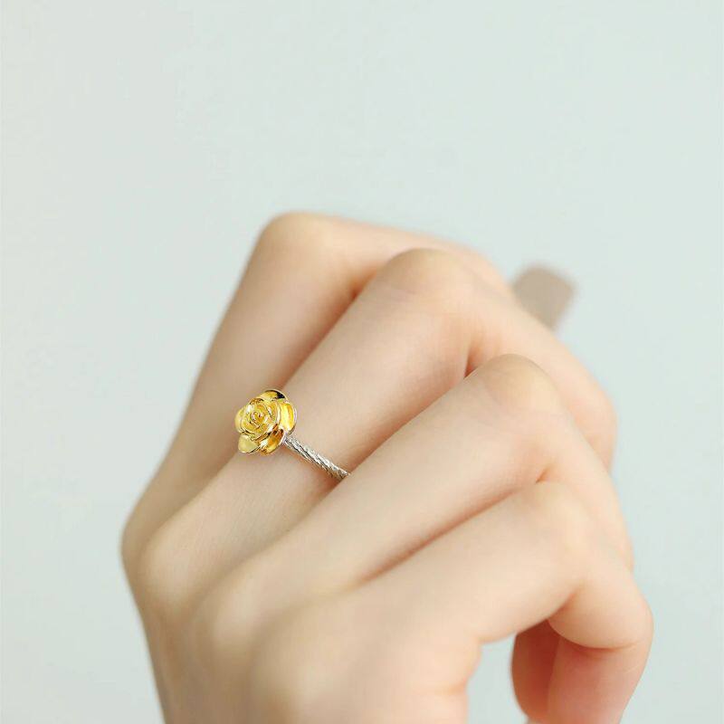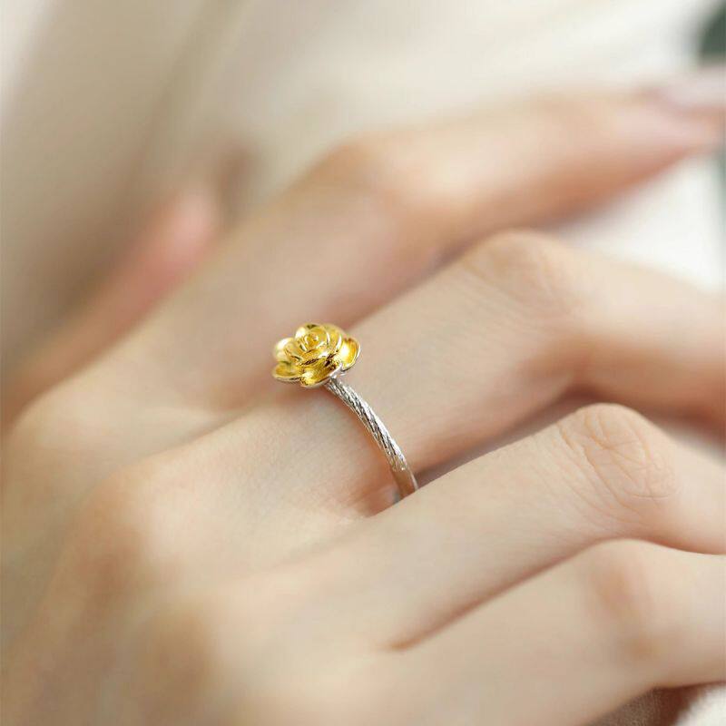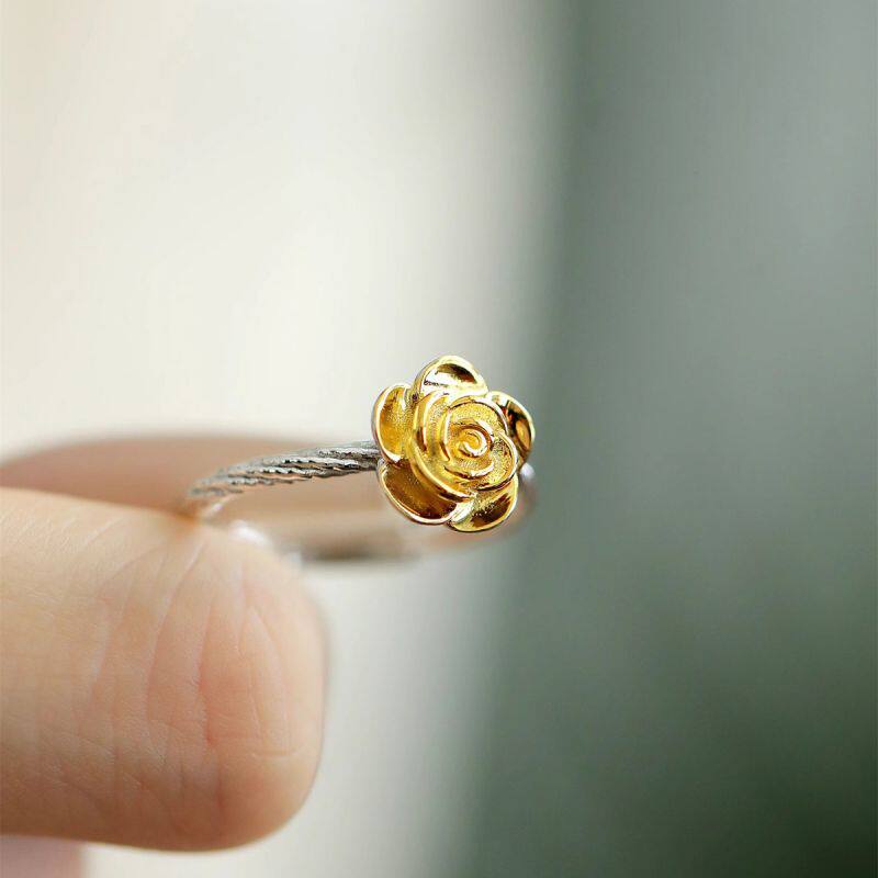 925银玫瑰花描金戒指女新中式小众高级感轻奢时尚开口可调节指环