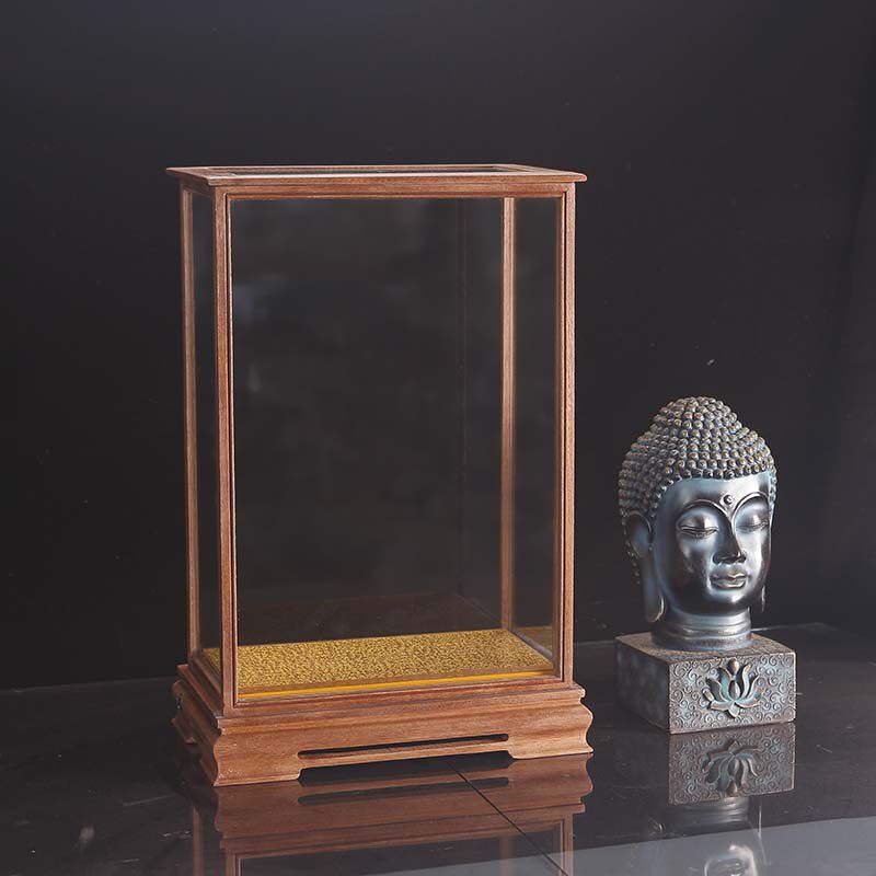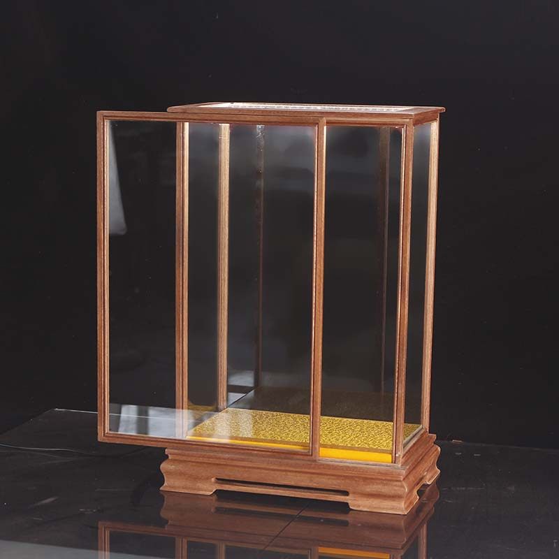 工艺品玻璃罩移门红木底座透明防尘罩佛像摆件展示柜带LED灯 定制