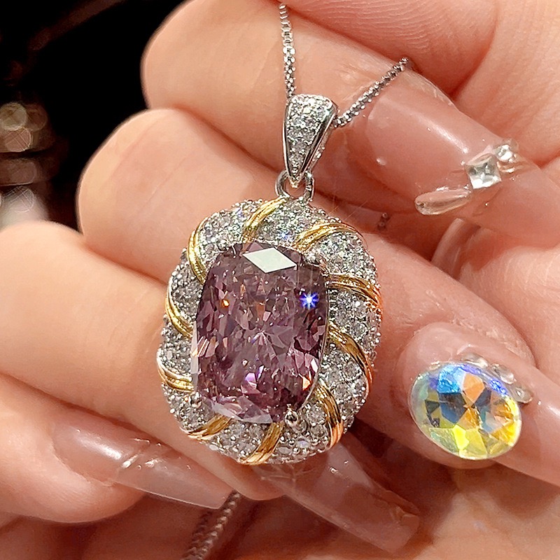 新款铜镀银饰品干枯玫瑰粉色仿彩宝镶钻吊坠女款项链满钻开口戒指