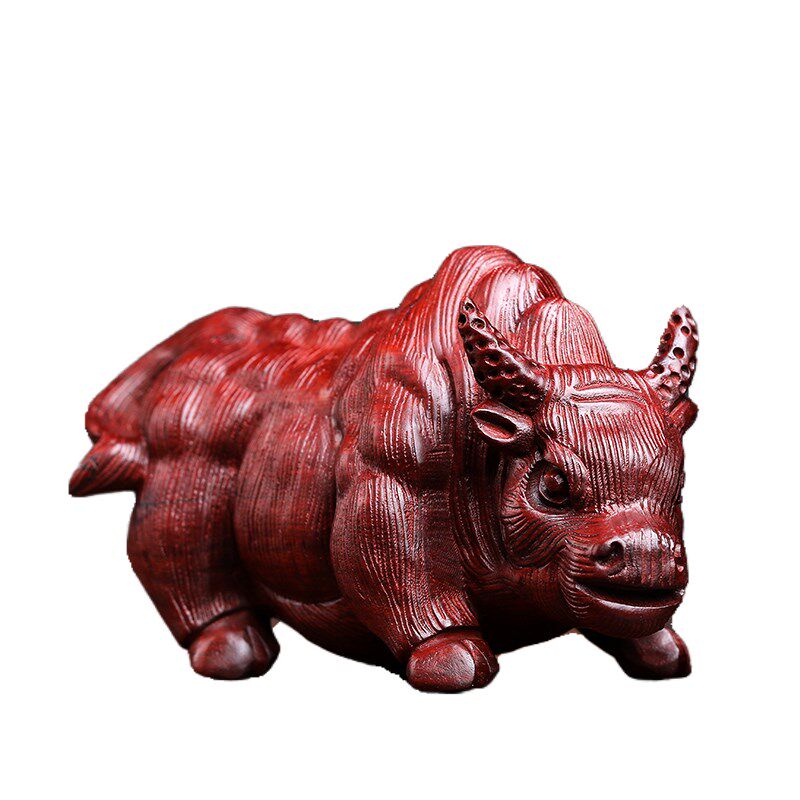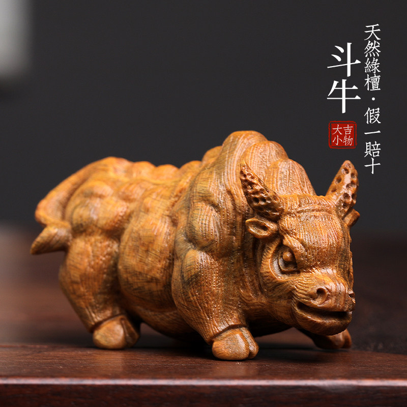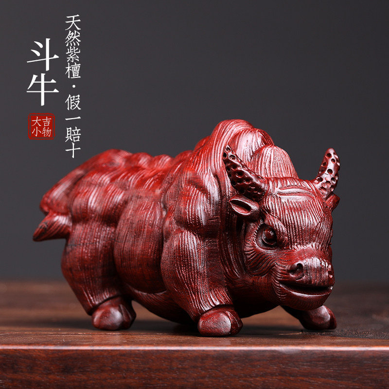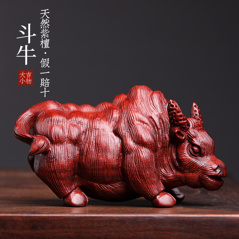 天然紫檀玉檀绿檀木斗牛木雕手把件生肖牛摆件转运文玩小摆件