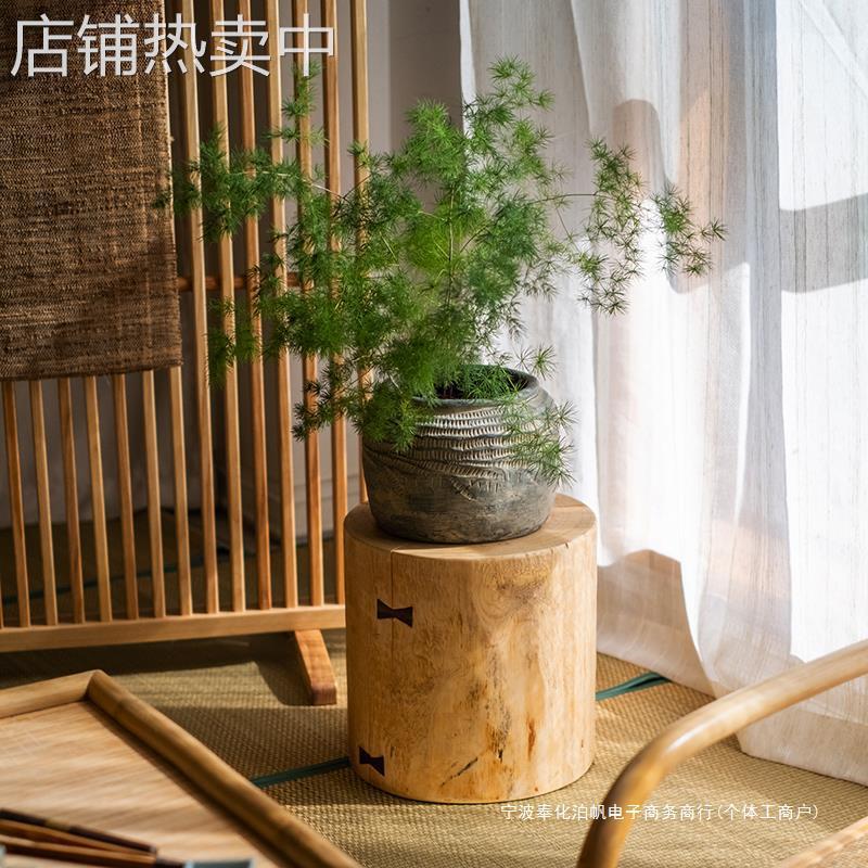 实木圆凳简约花架树桩茶室矮凳茶几木墩子装饰服装店民宿摆件