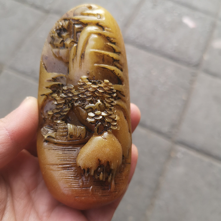 仿天然芙蓉石老挝田黄石松树下垂钓摆件山水风景家具摆设手把件