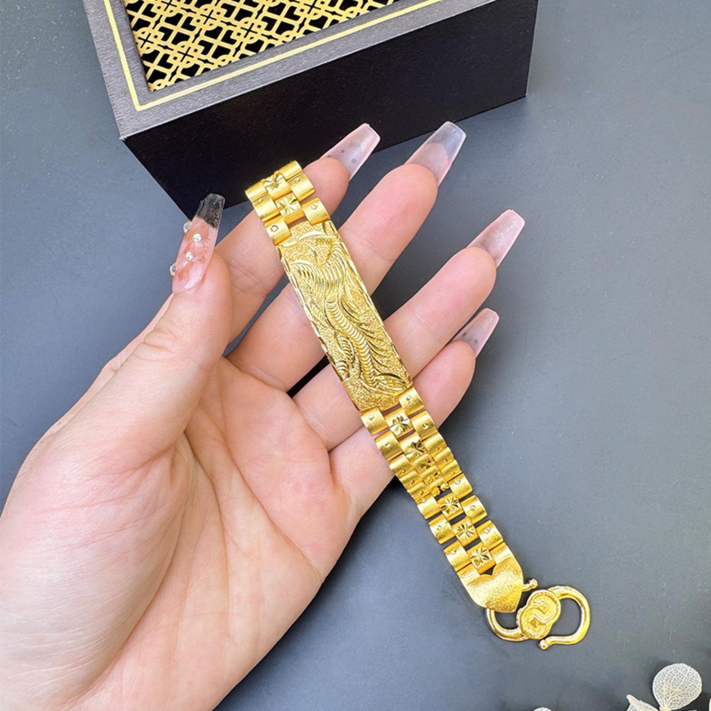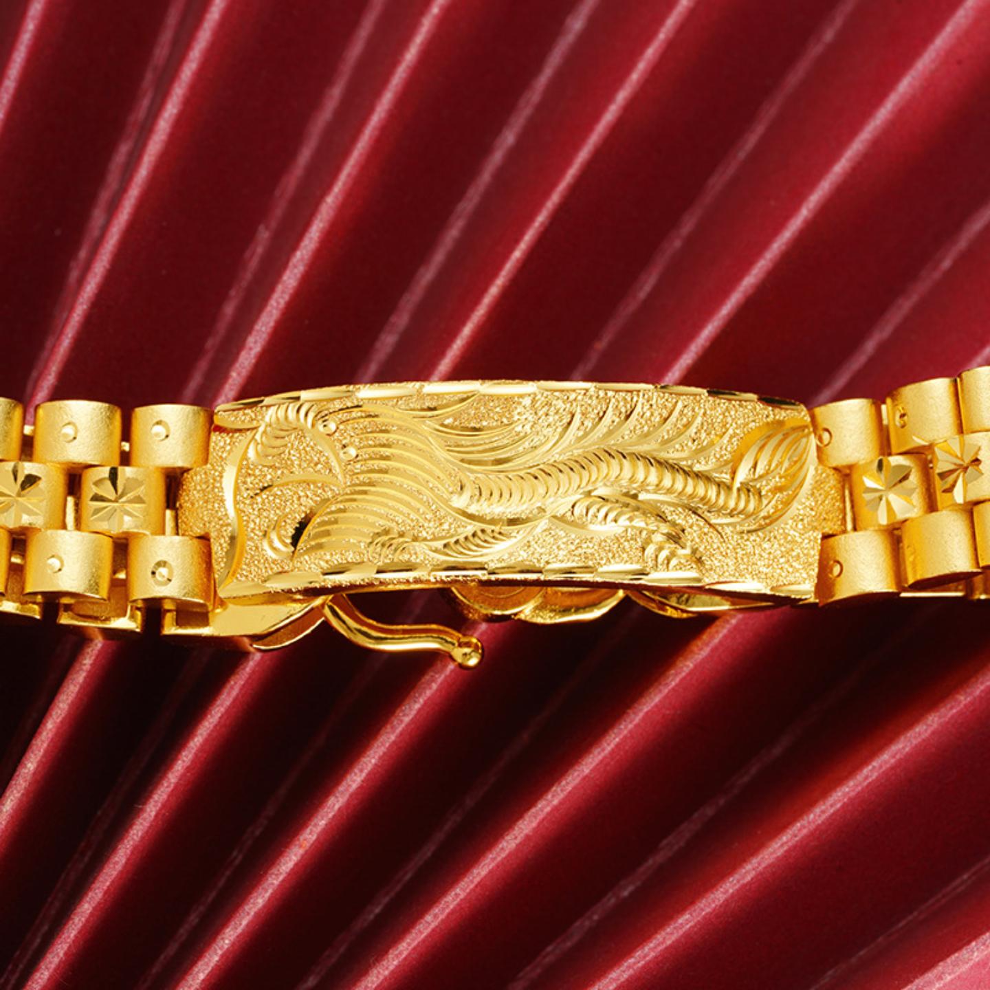 新款越南沙金弧形龙纹图案手链男士复古国风手表链手饰品配饰