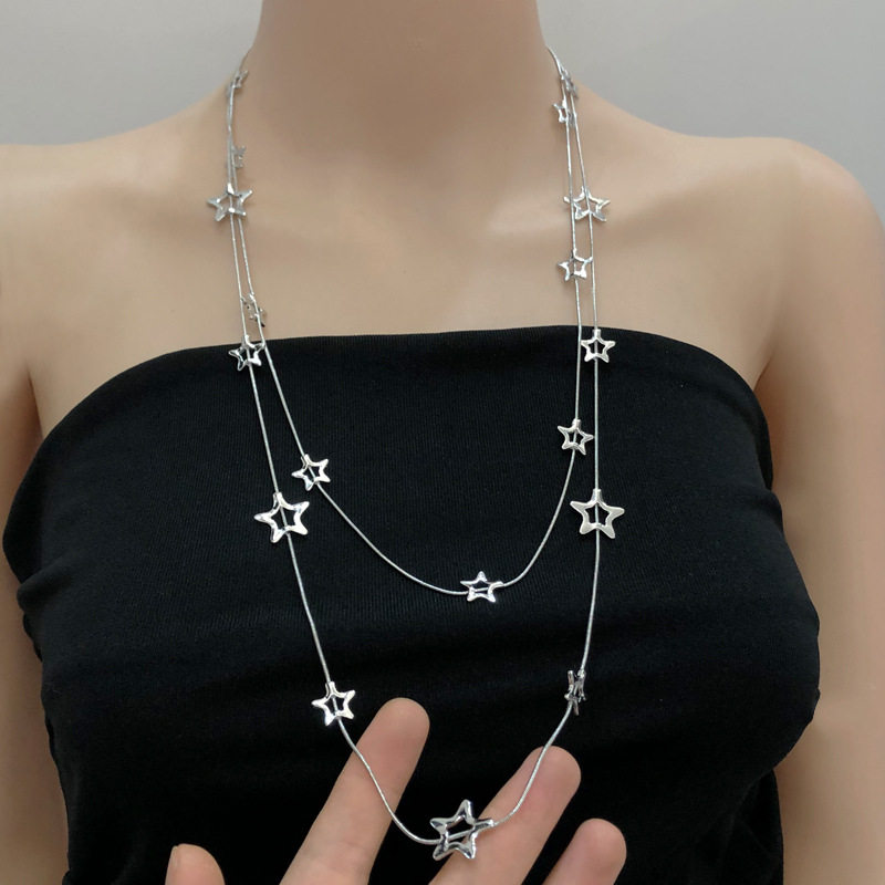 当前位置:首页>商品详情>欧美气质双层长款叠戴灰色珍珠星星项链女甜酷轻奢高档毛衣链颈链
