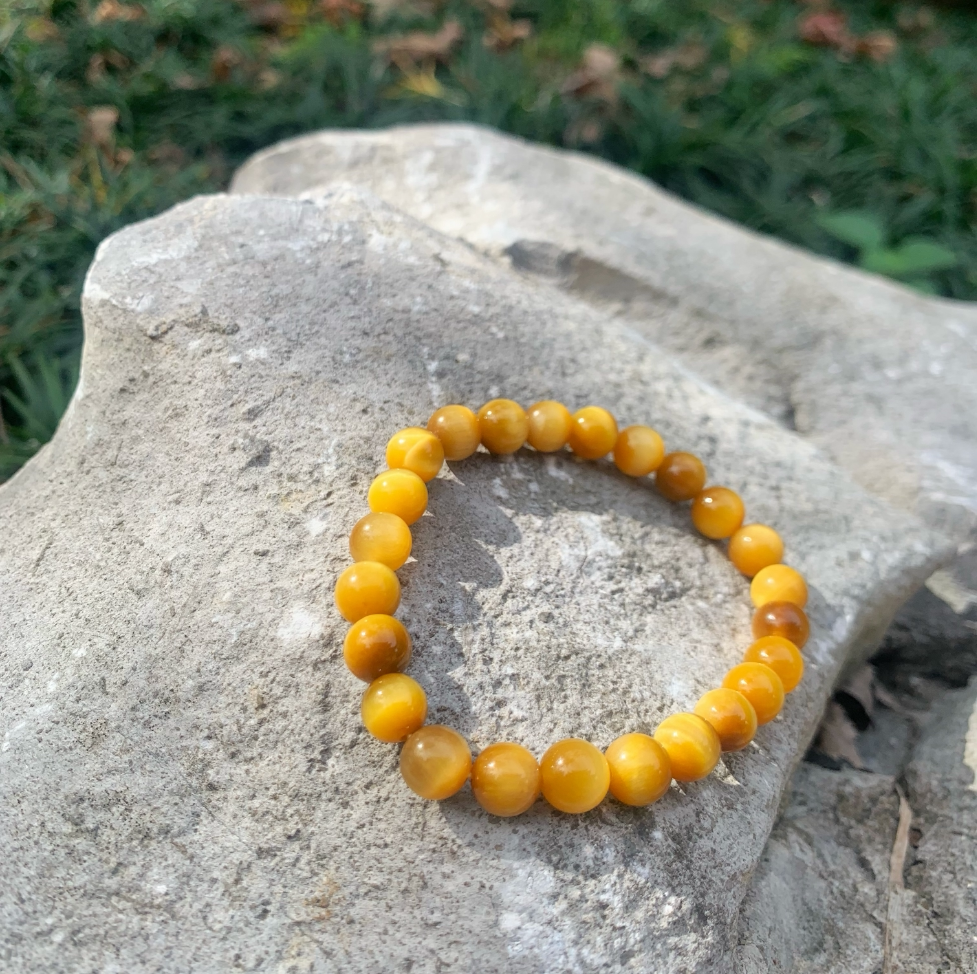 代流通处金虎晶石手串佛珠猫眼虎睛石黄色单圈8mm天然素圈手链