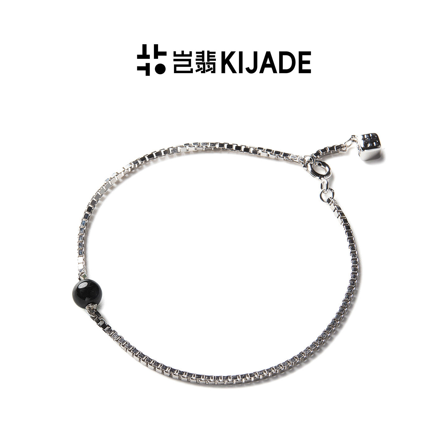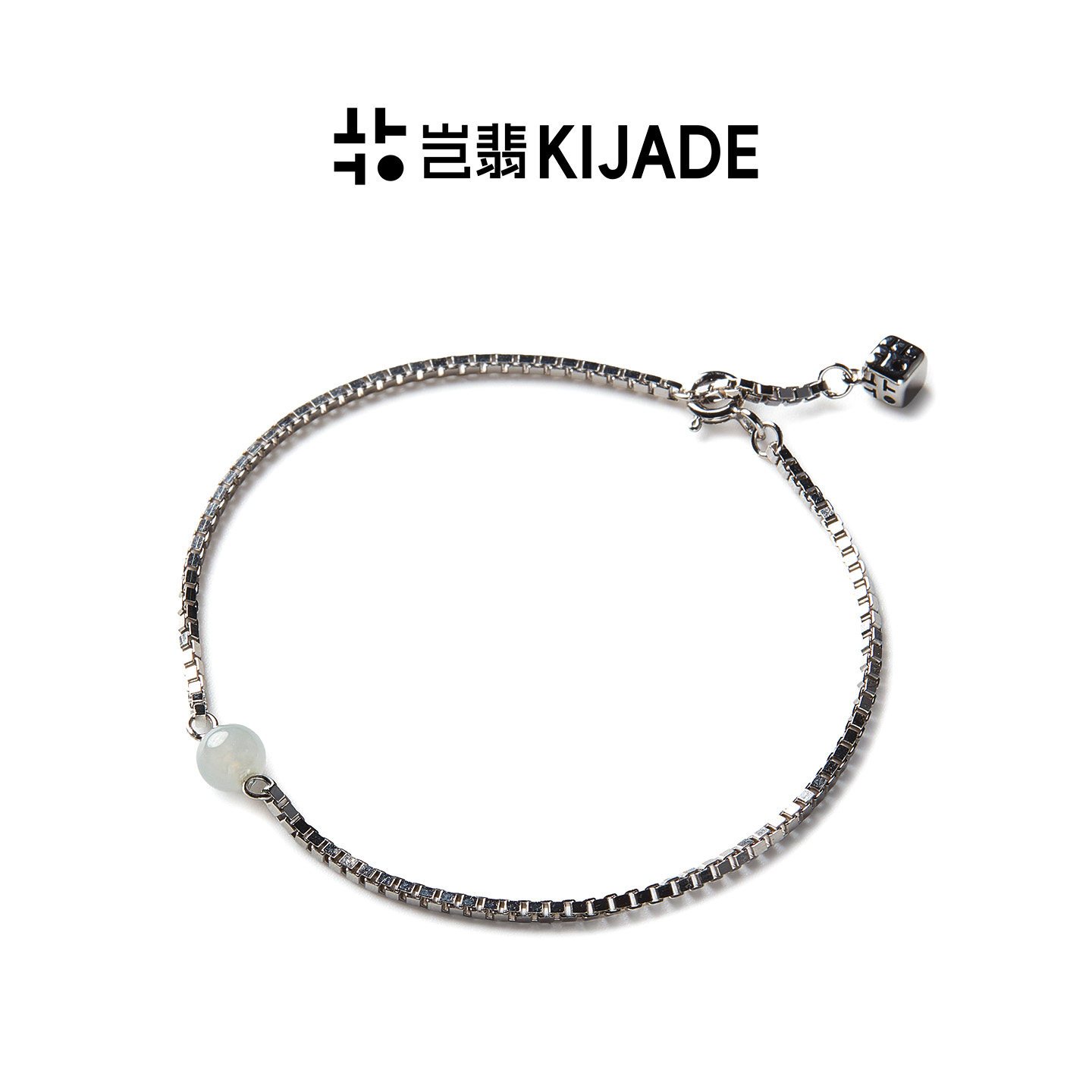 岂翡翡翠单珠盒子手链缅料A货纯银个性可调节轻奢男女配证书925银