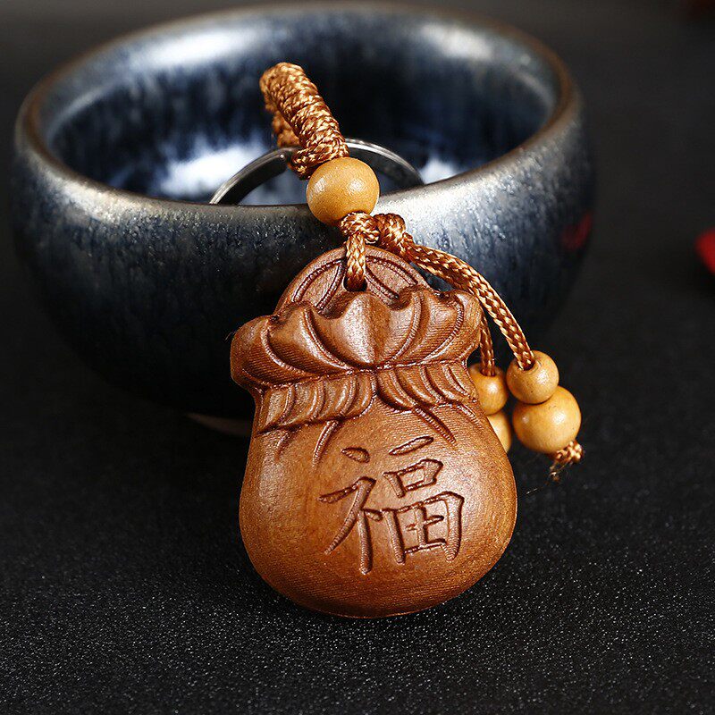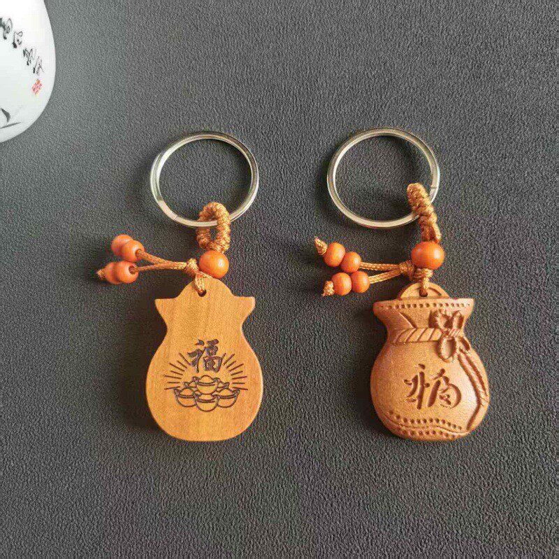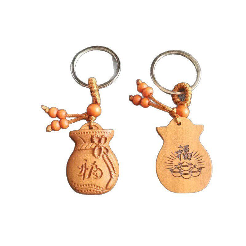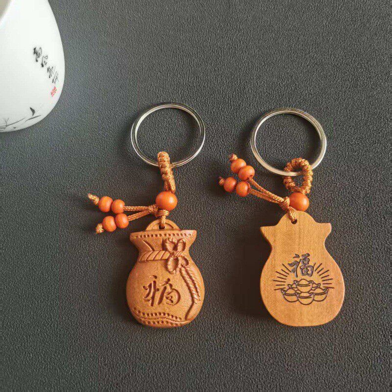 桃木福袋汽车钥匙扣挂件男女招财钱袋钥匙链坠书包挂饰手机链挂绳