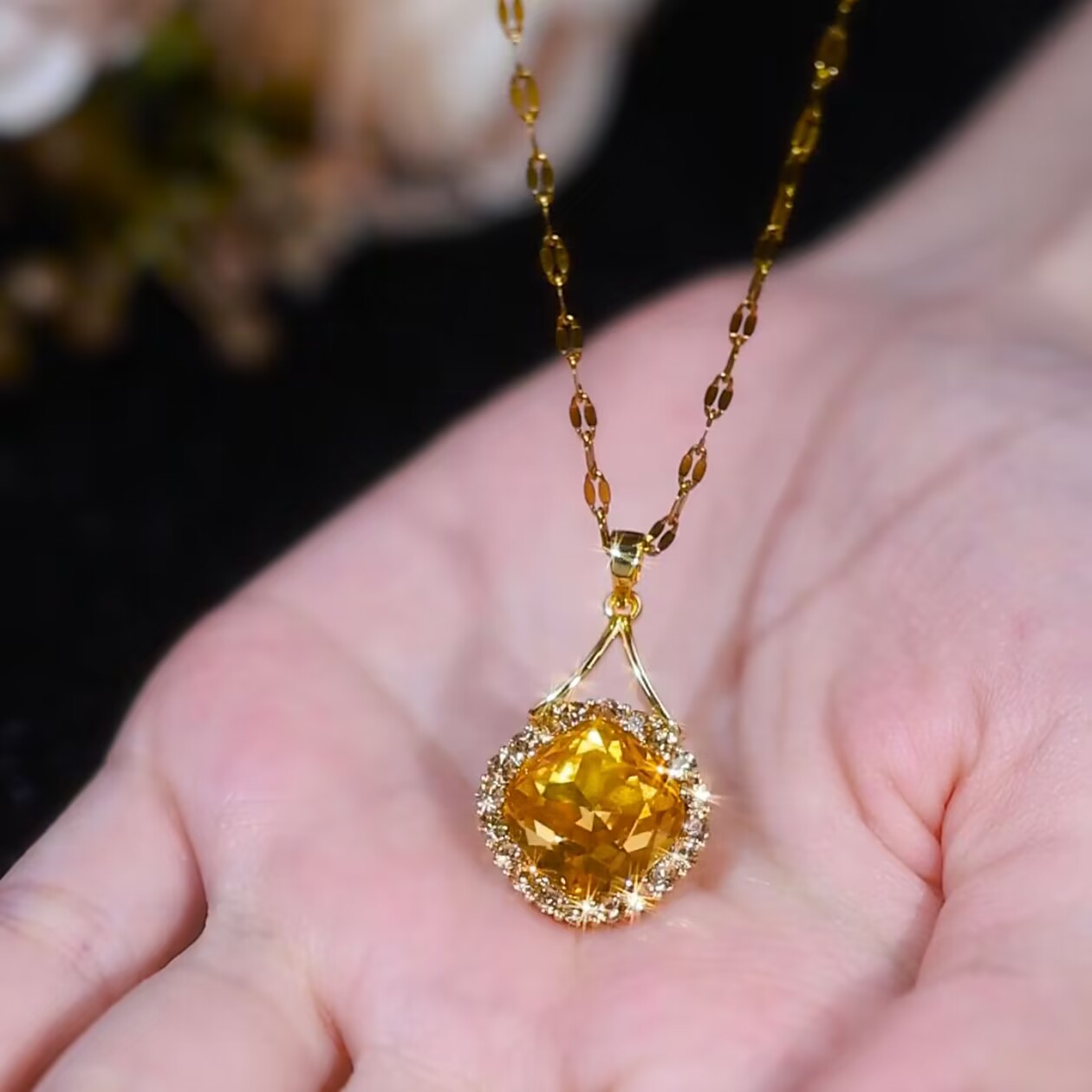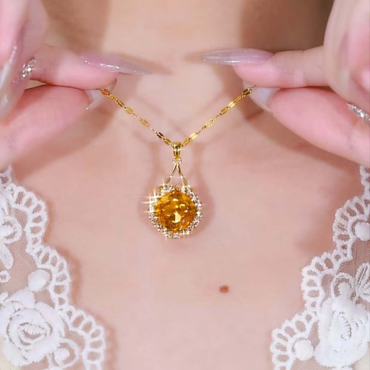 高级感香槟色圆形水晶项链女网红爆款轻奢气质小众设计感精美项链