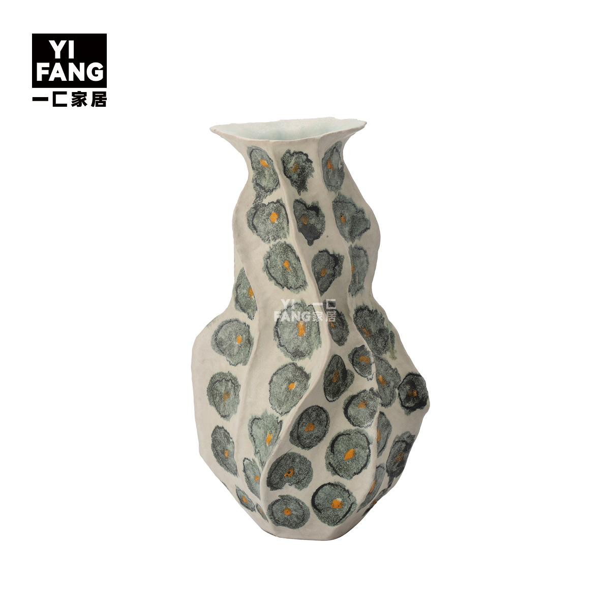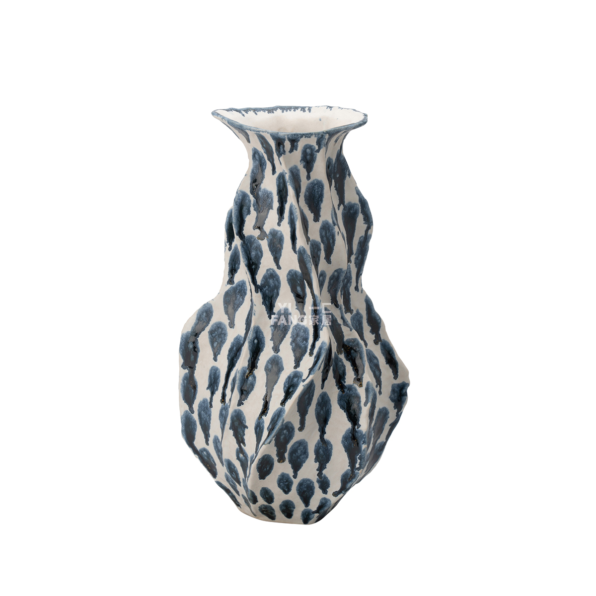 一匚 中古手绘青花陶瓷艺术花瓶 样板间复古手作花器插花摆件