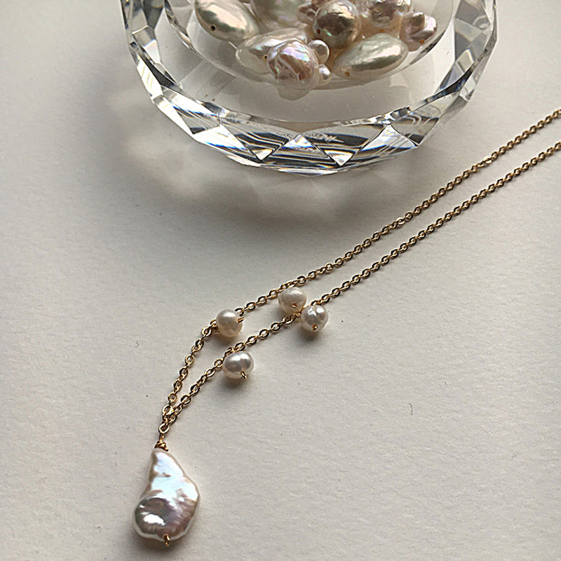 天然淡水珠项链法式水滴巴洛克异形珍复古锁骨链chocker颈链
