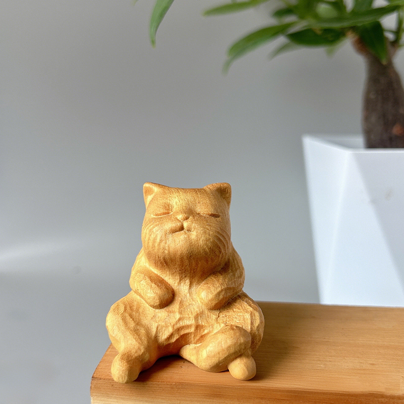 【普陀山官方】黄金檀木雕现代童趣可爱清香傲娇猫招财小猫摆件