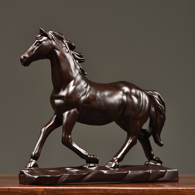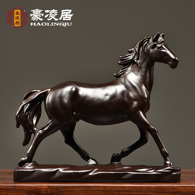 黑檀实木雕刻生肖马摆件红木马到成功客厅家居办公室装饰工艺品