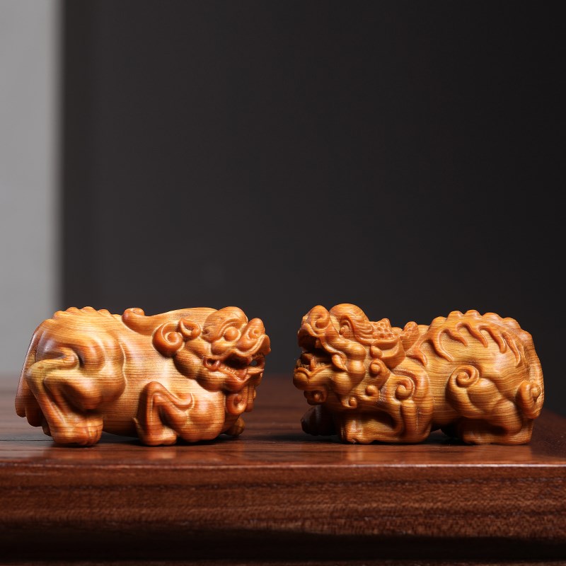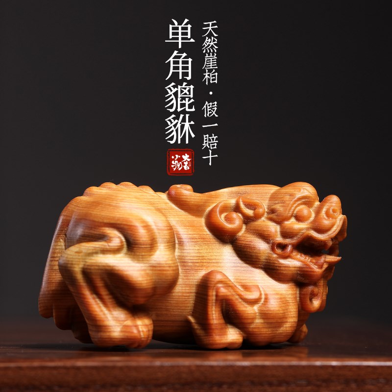 天然崖柏木实木雕刻貔貅摆件文玩手把件单双角貔貅送男士盘玩礼物