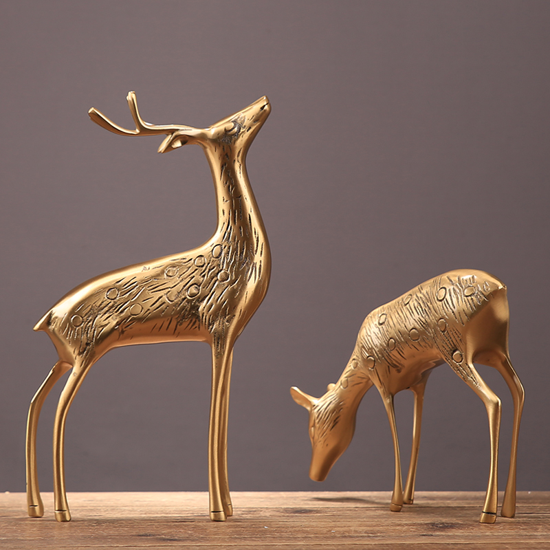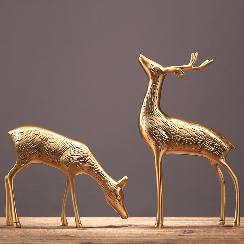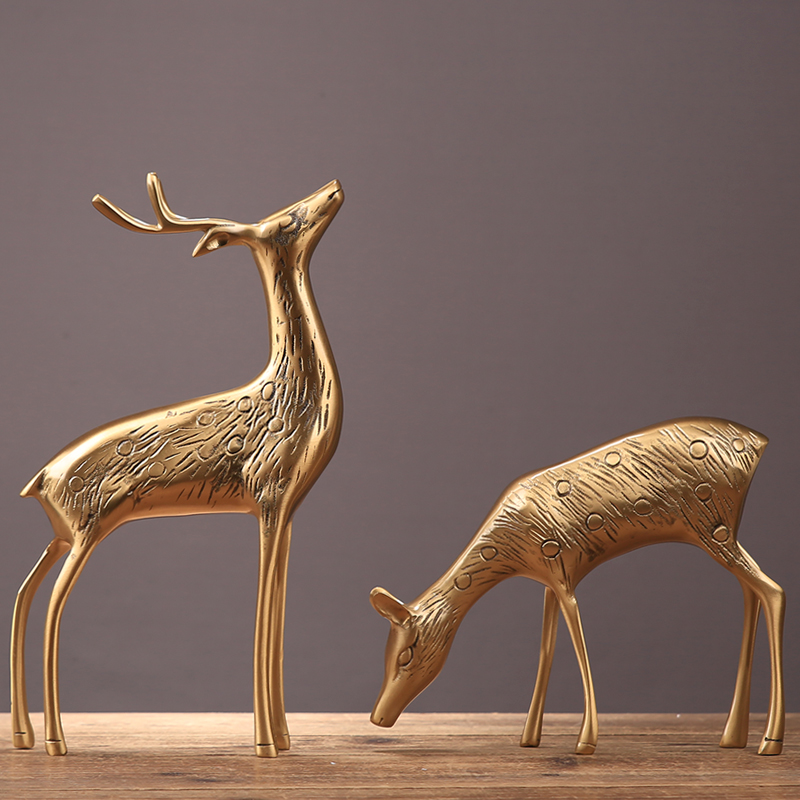 中式创意纯铜鹿摆件电视柜轻奢装饰品客厅餐桌工艺品摆设玄关饰品