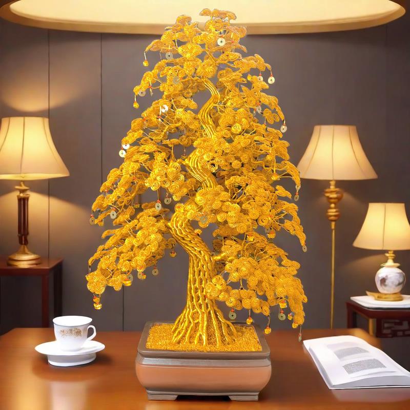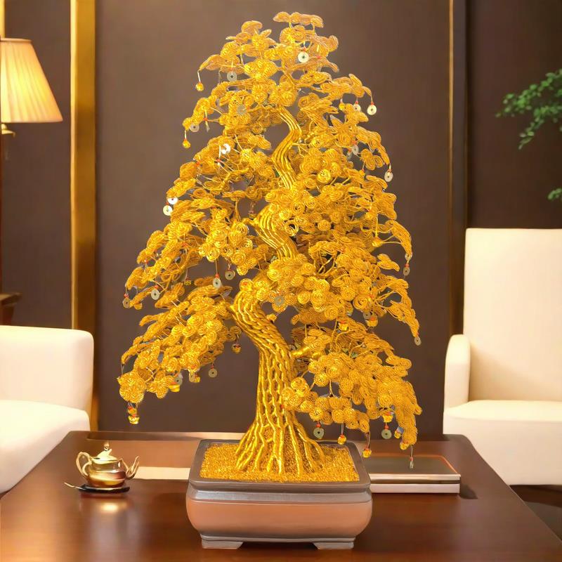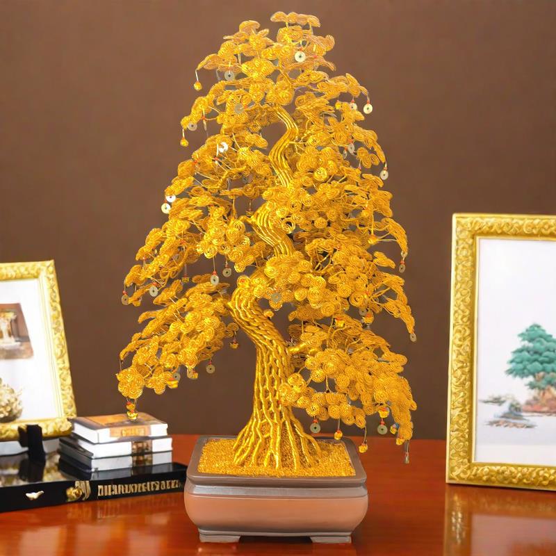 纯手工编织铝丝发财树新中式客厅摆件新居乔迁礼物开 业招财摇钱