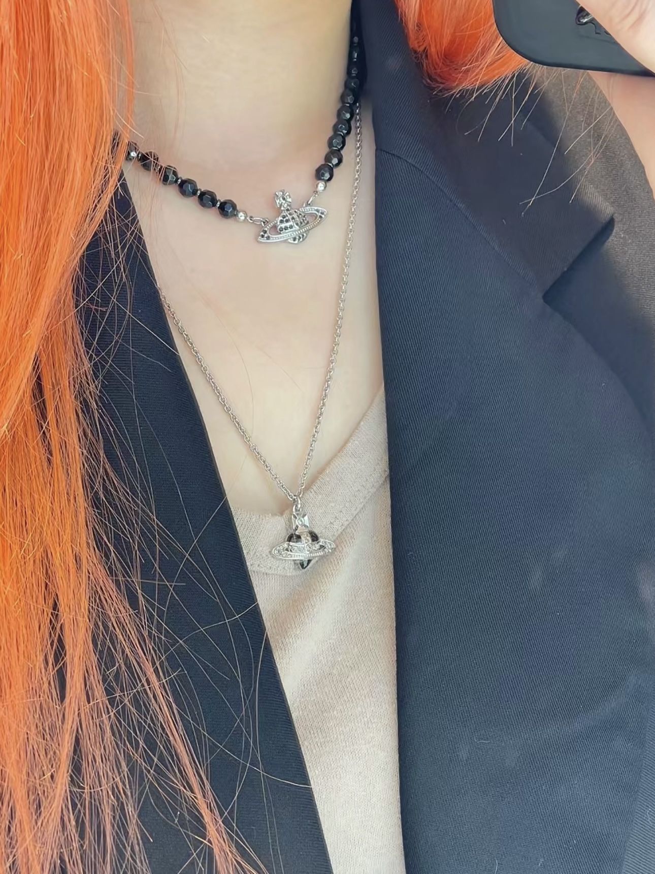 叠戴必入!土星黑玛瑙珍珠手链单层三层项链锁骨链NANA同款黑色