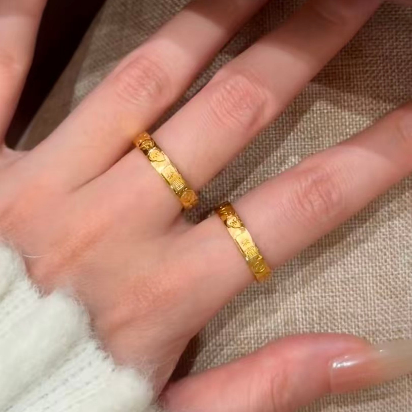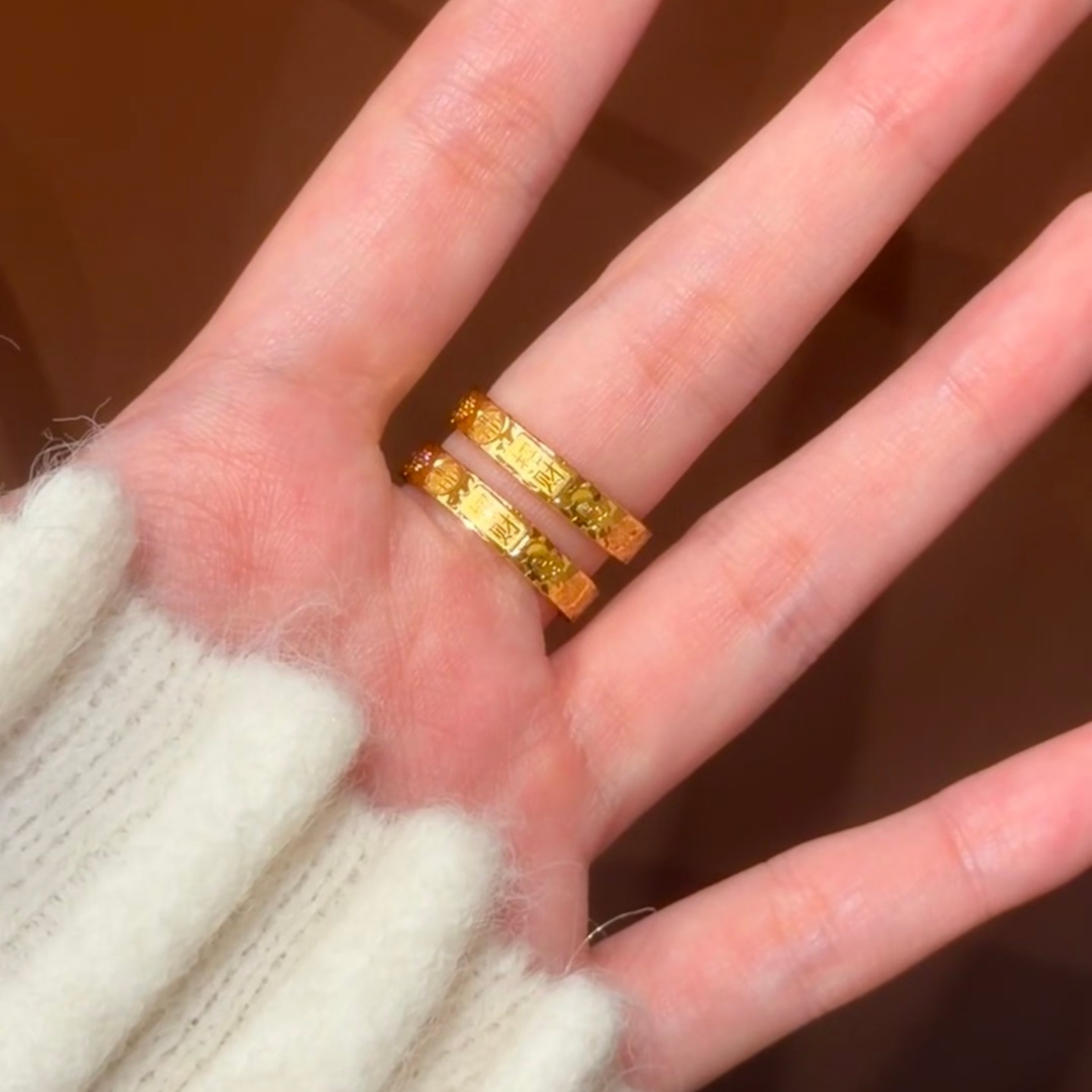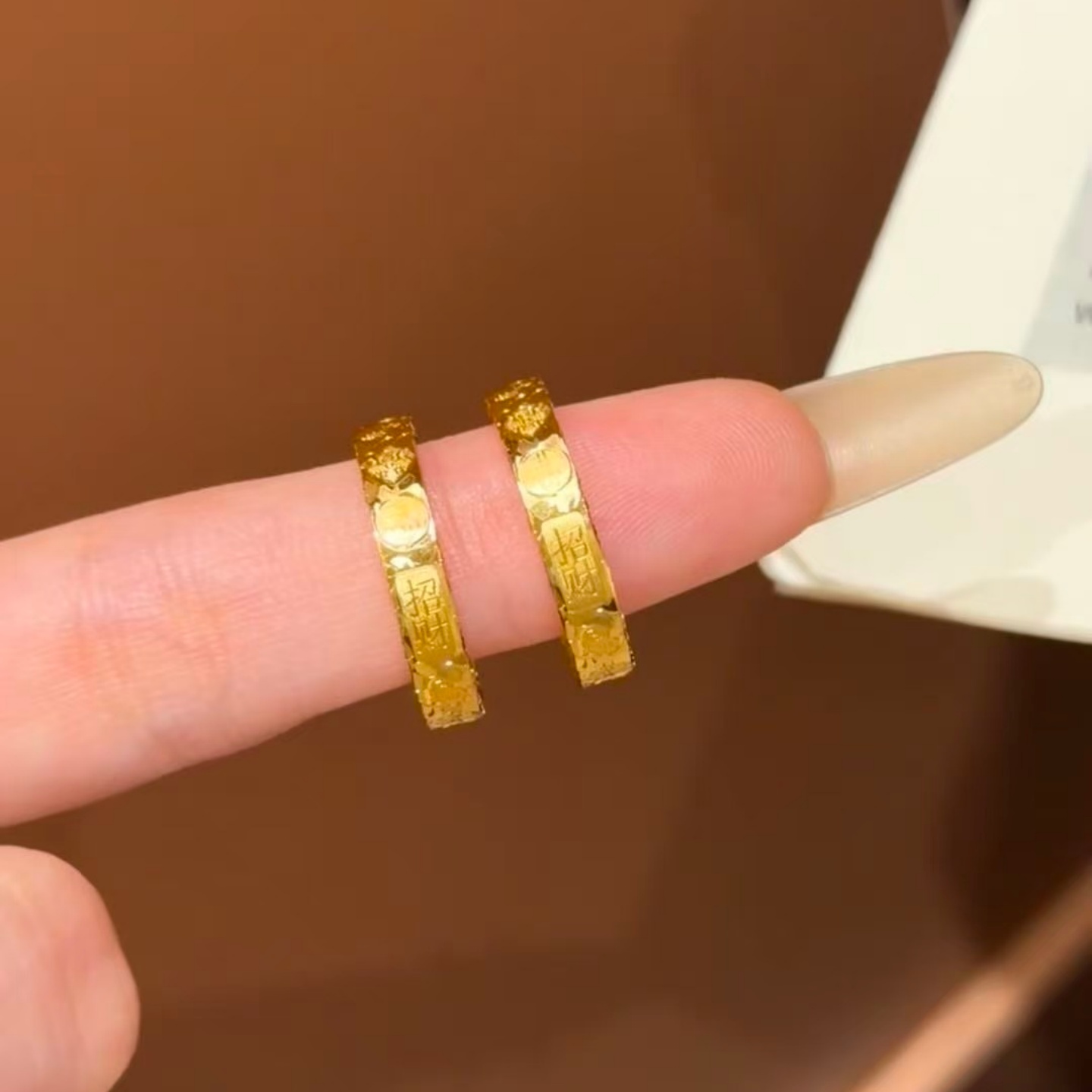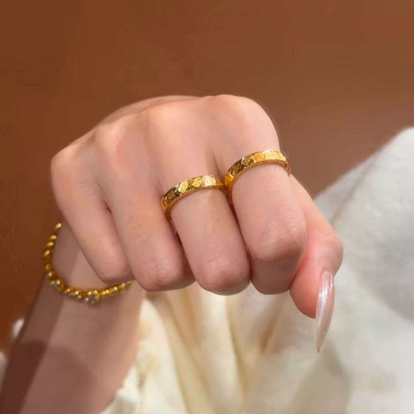 卡纯诗沙金仿真黄金色招财吉言戒指女小众精致高级感指环实心古法