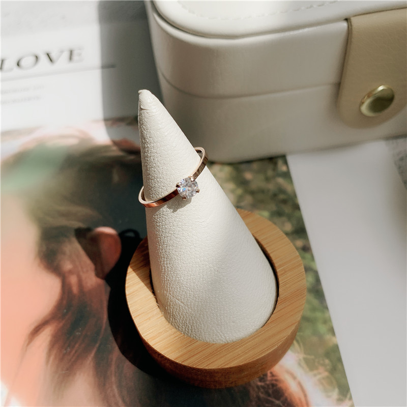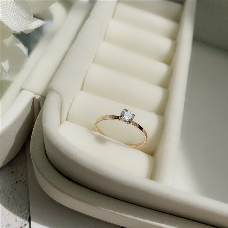 超值日韩版百搭细款迷你小圆形单钻钛钢镀玫瑰金食指尾戒指女戒子
