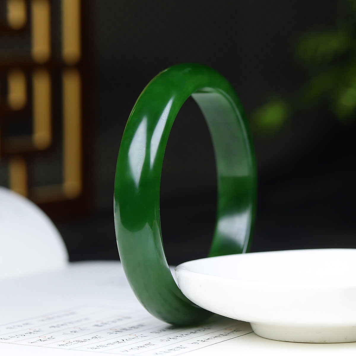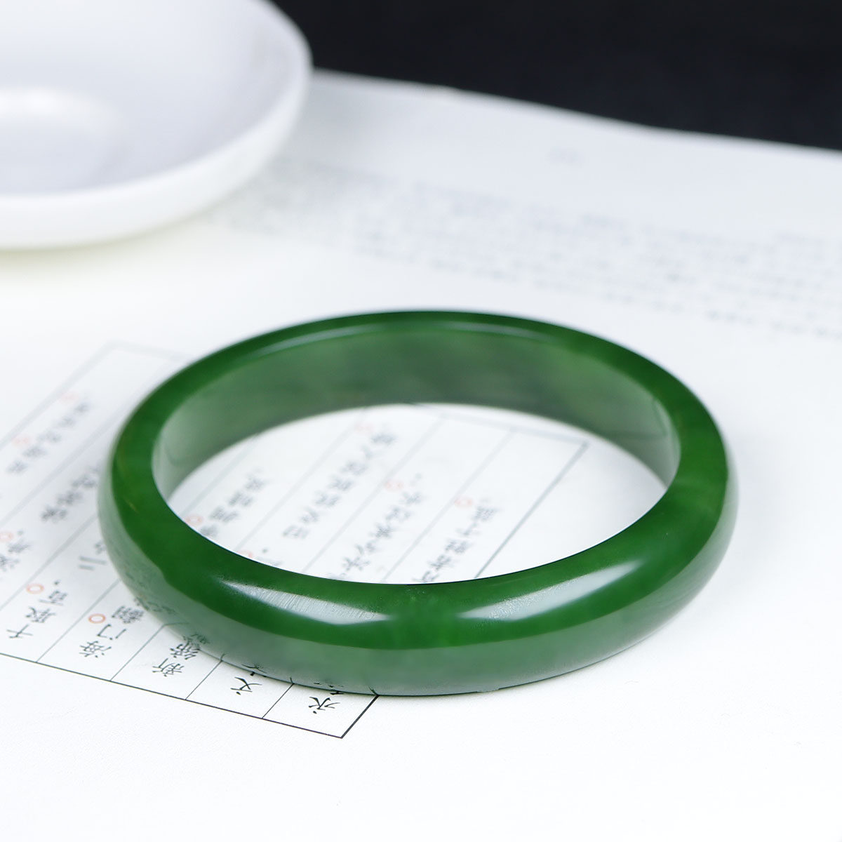 (古晨珠宝)俄罗斯和田玉菠菜绿碧玉手镯女款玉镯腕间优雅49g61mm