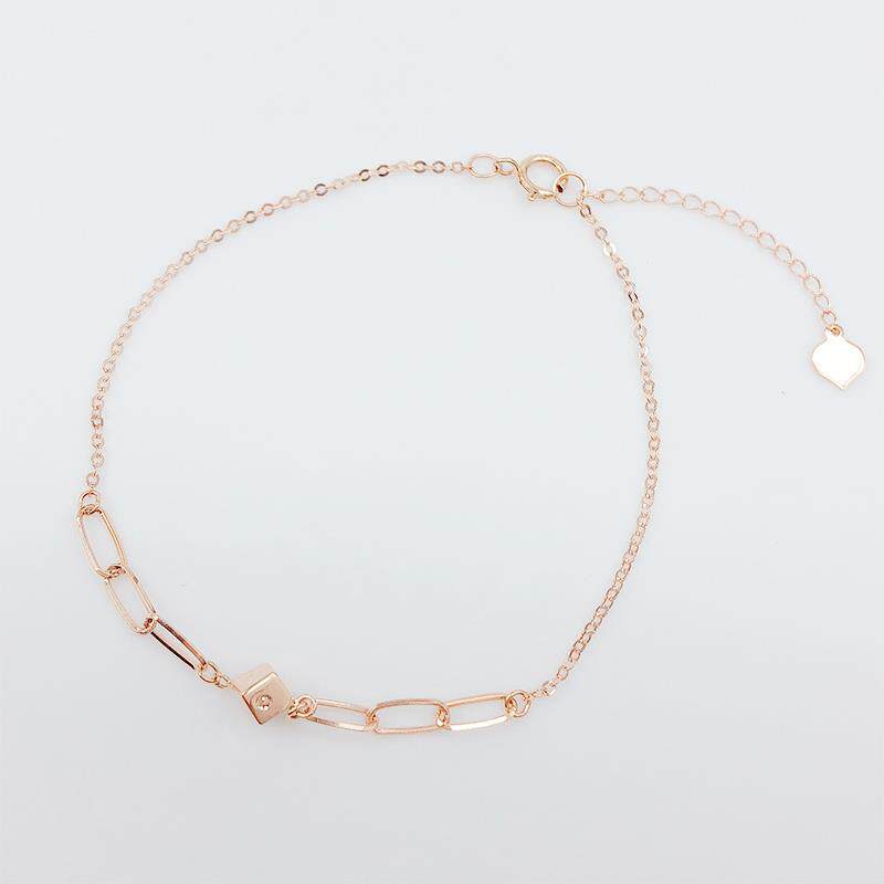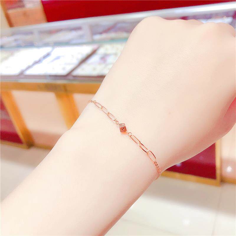 俄罗斯585紫金镀18K玫瑰金气质时尚个性小方块手链可调节女款礼物
