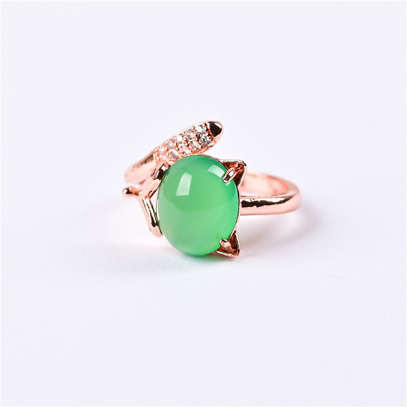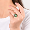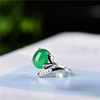玉石匠玉髓祖母绿色戒指 阳绿色狐狸头镶嵌指环 925银镶嵌首饰