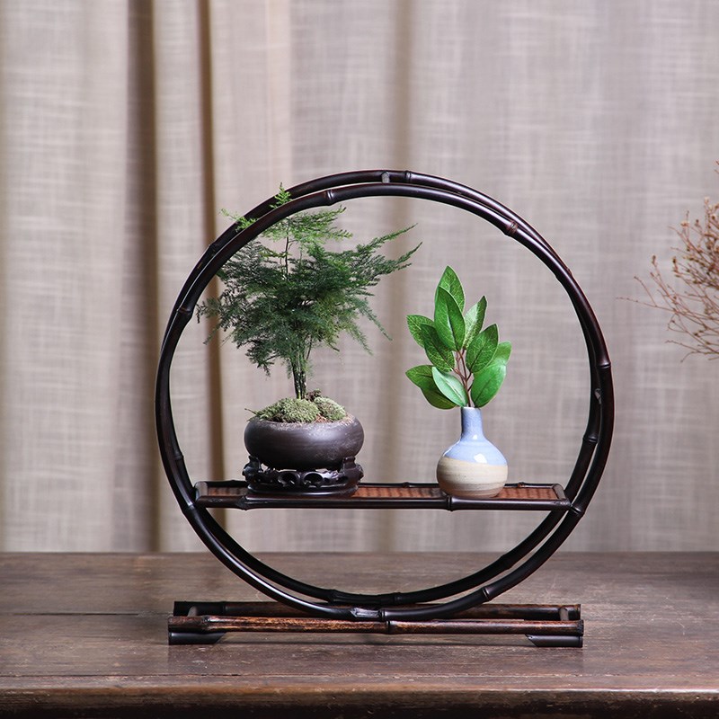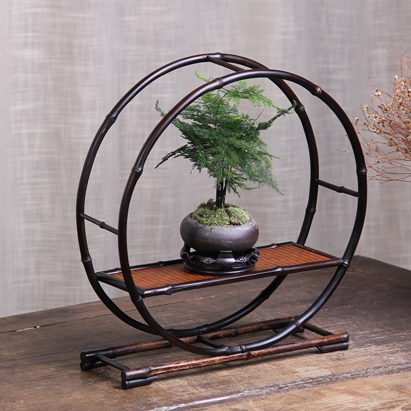 竹制植物摆件架架子花架客厅装饰书房小盆景博古架复古摆件展示架