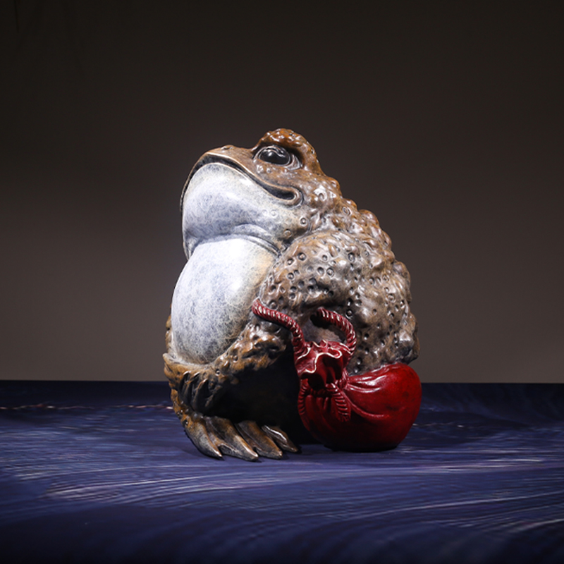金蜗牛悠然蟾蜍铜摆件三足蛤蟆金蟾蜍手把件家居饰品客厅开业礼品