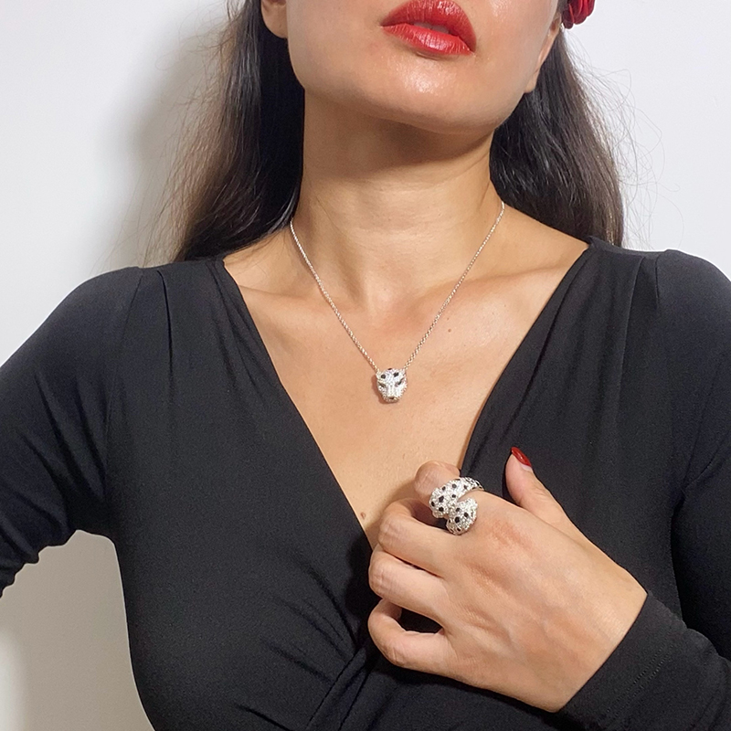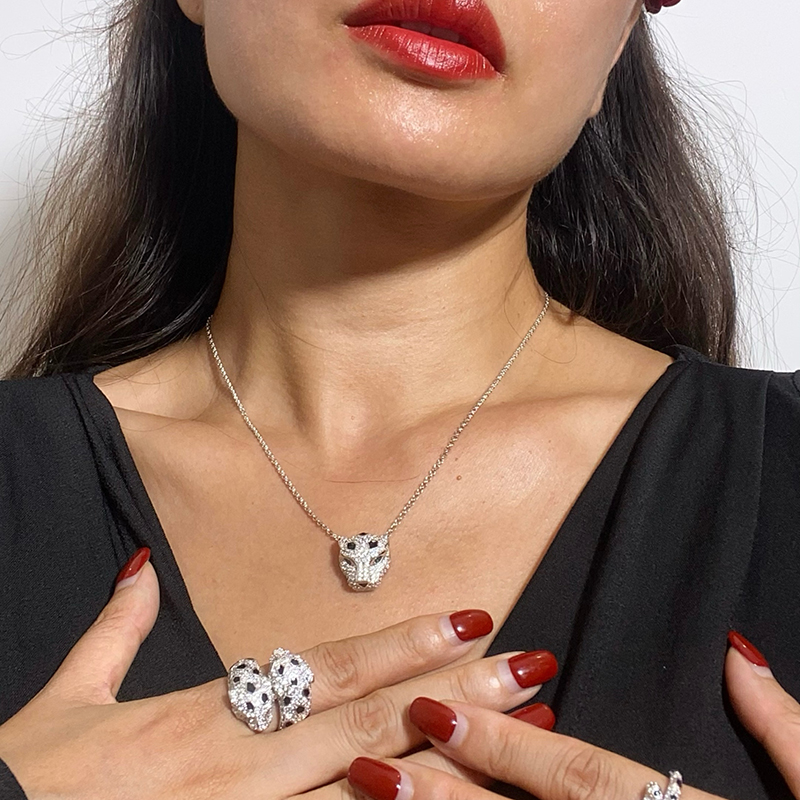 吾爱晚宴珠宝贵妇霸气满钻豹子头项链男女同款招财个性黑白经典配