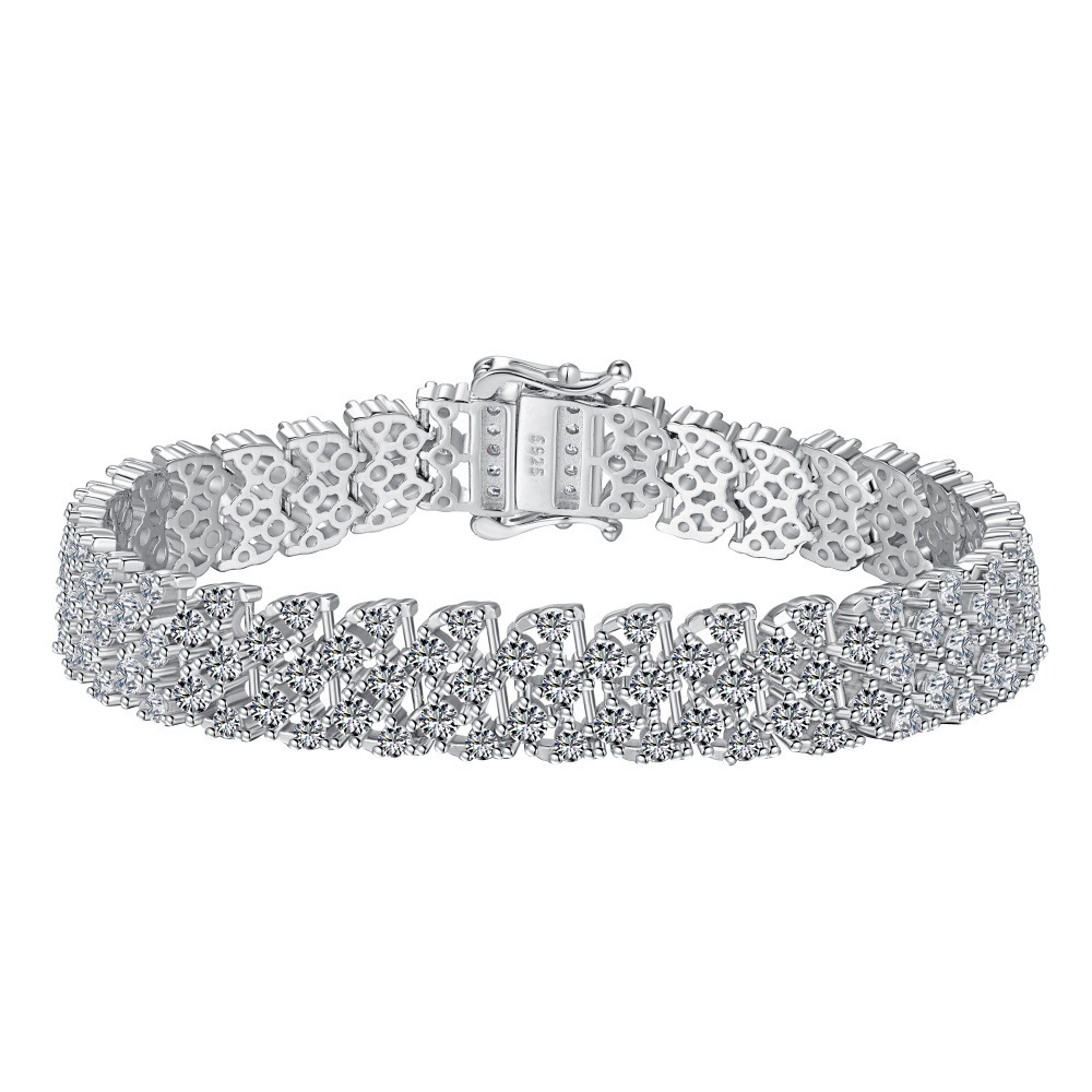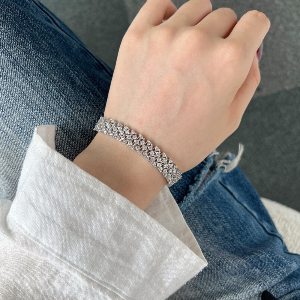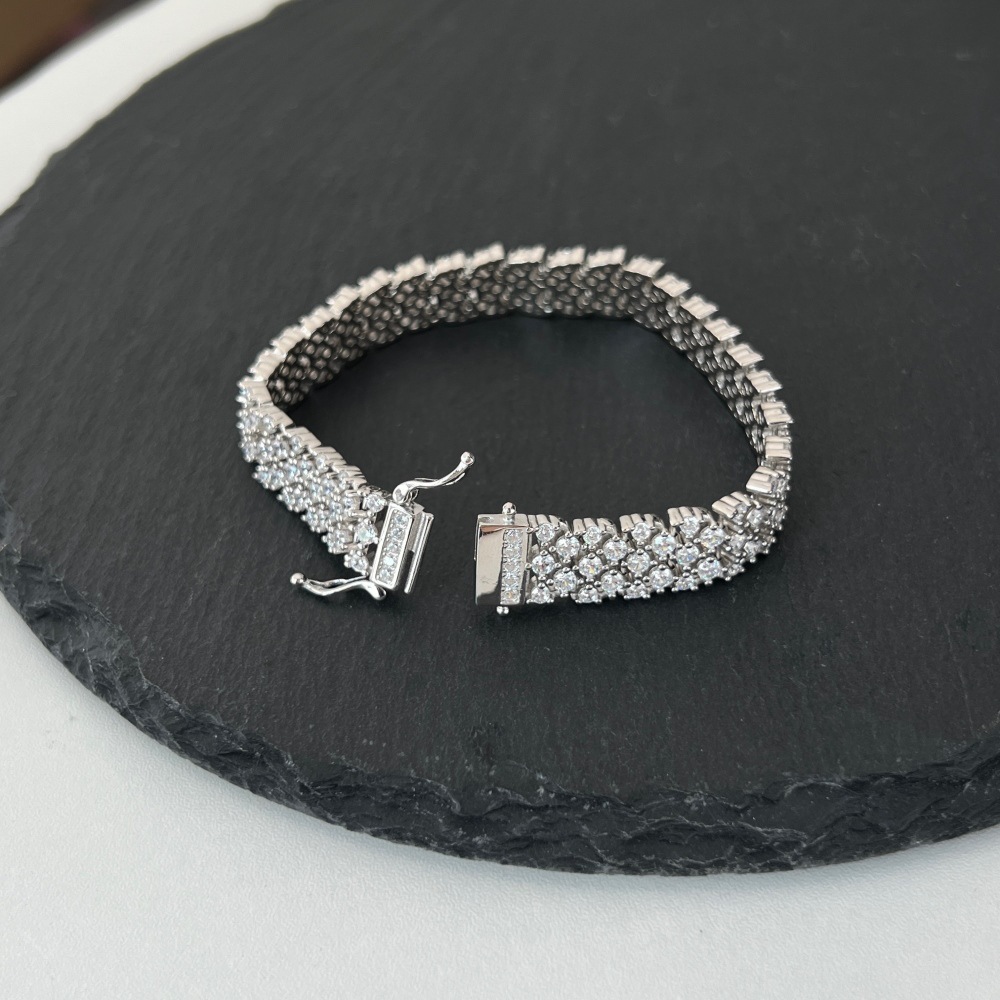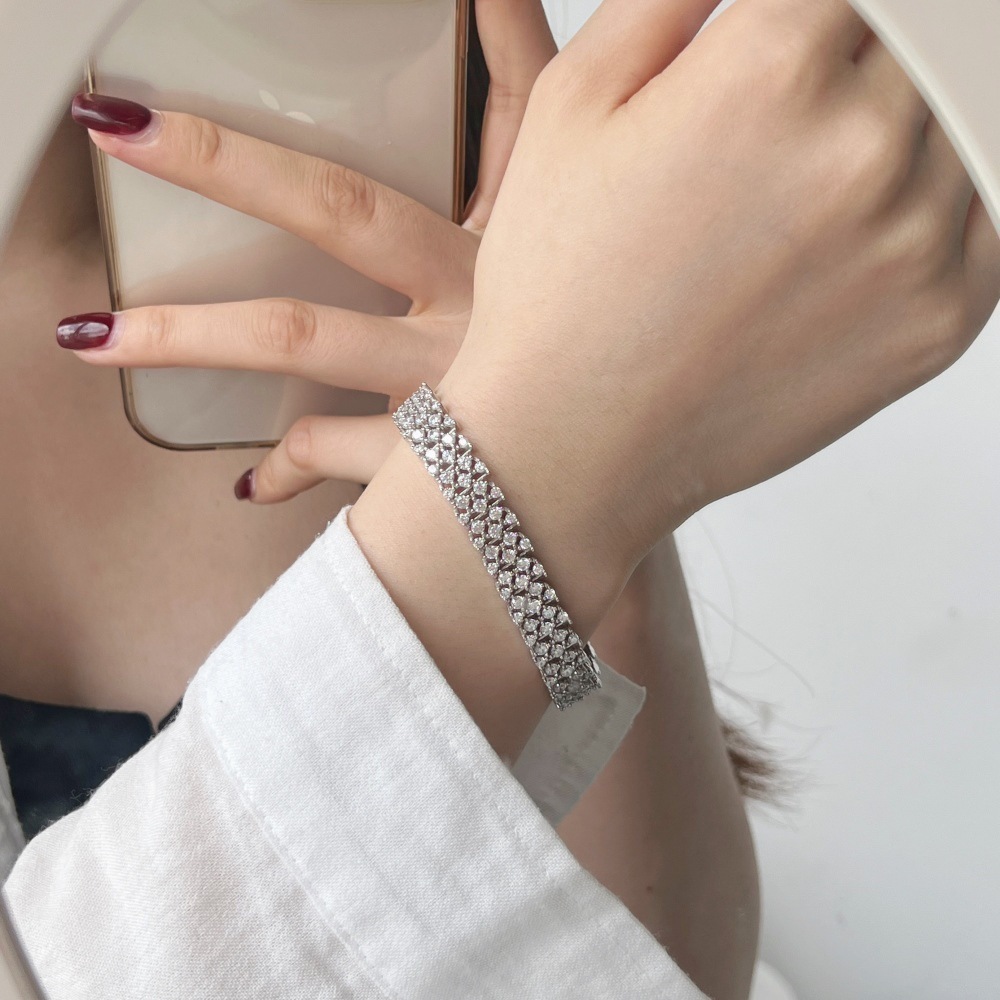 跨境珠宝S925纯银手链女手欧美风高级设计手表链排钻满钻锆石手饰