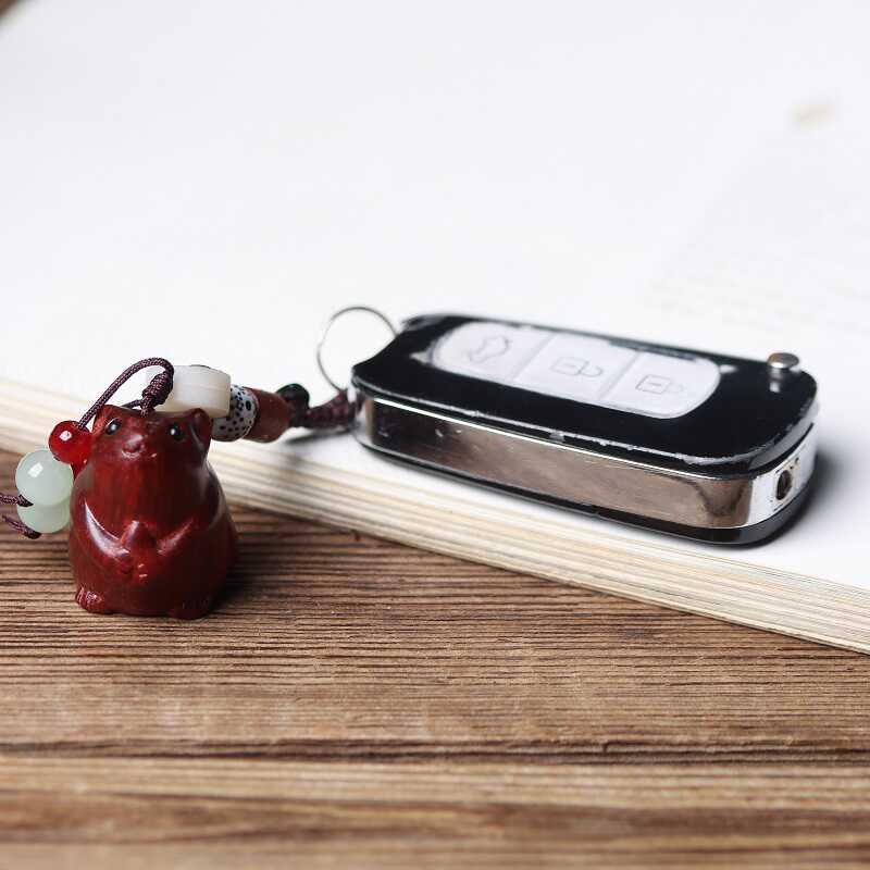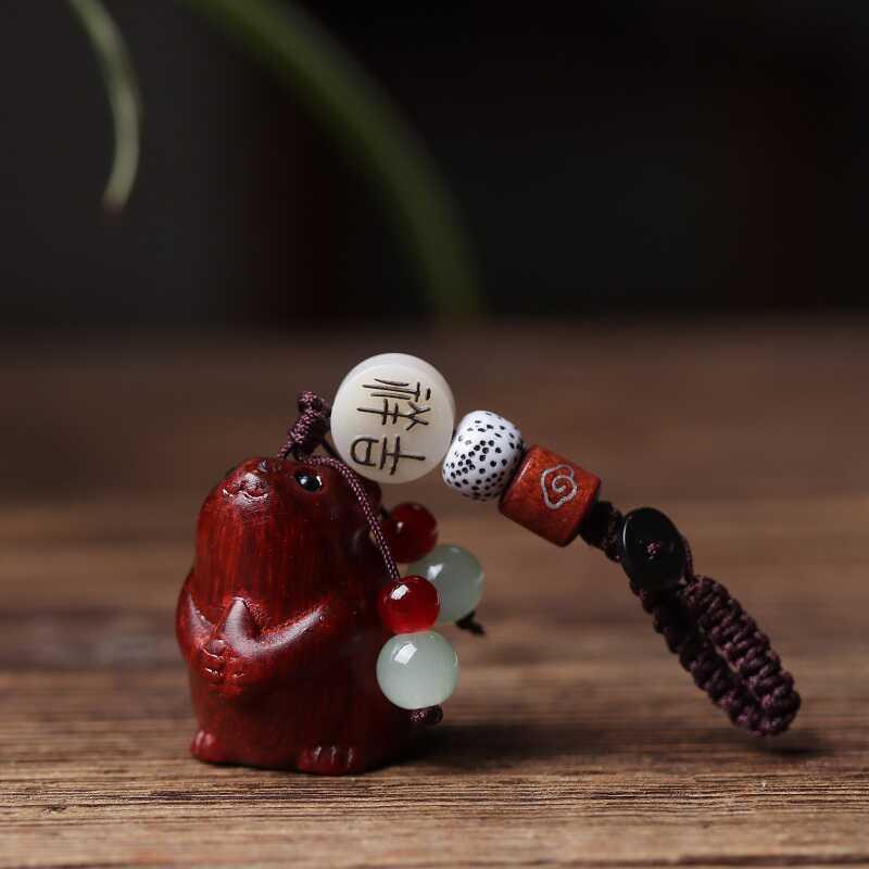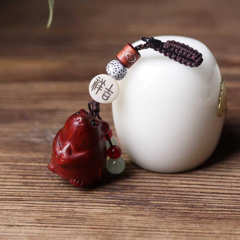 可爱老鼠车钥匙扣挂件吊坠紫檀木雕刻生肖鼠手把件实木男女情侣款